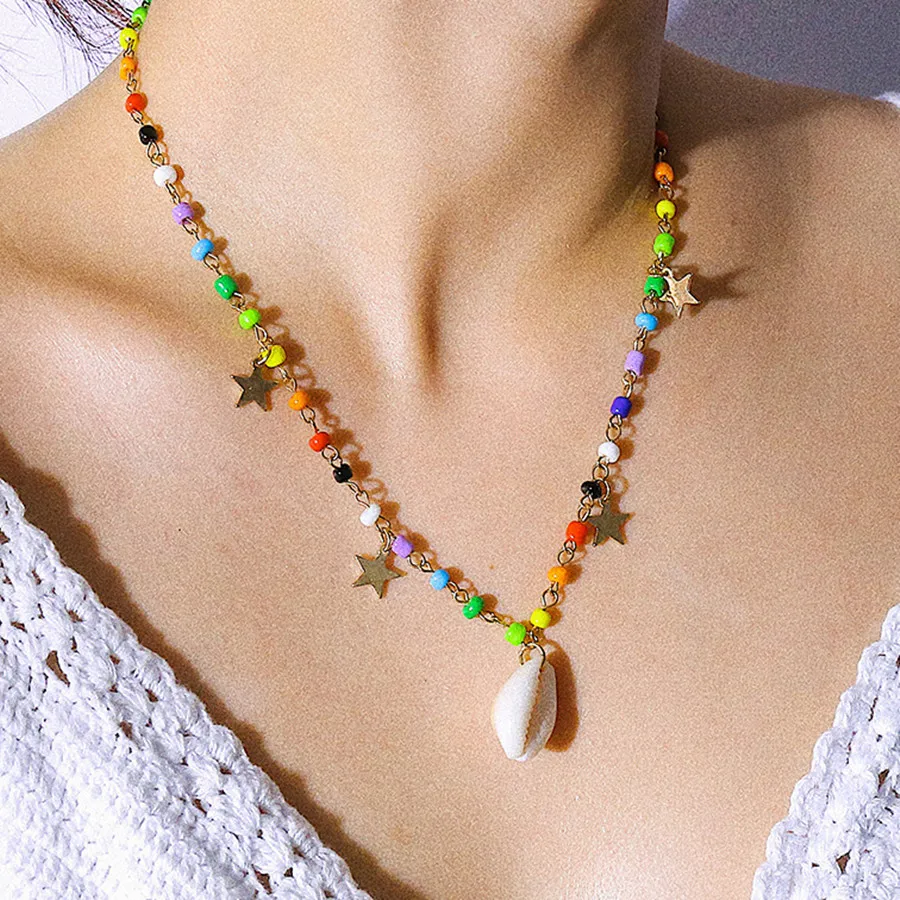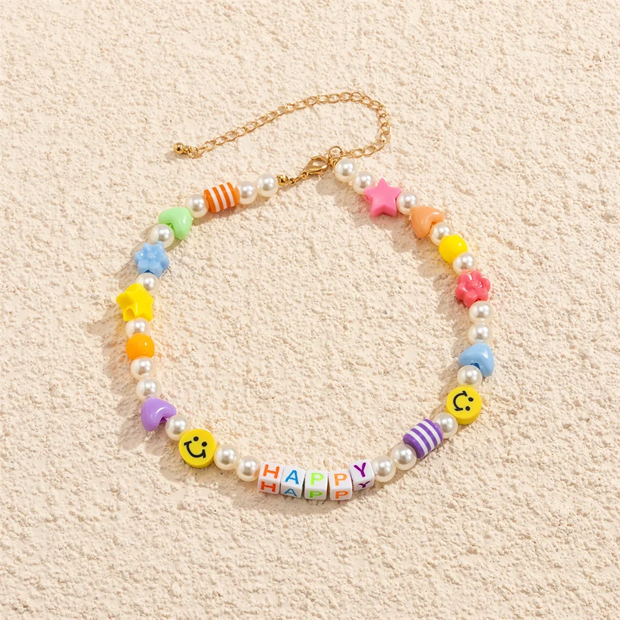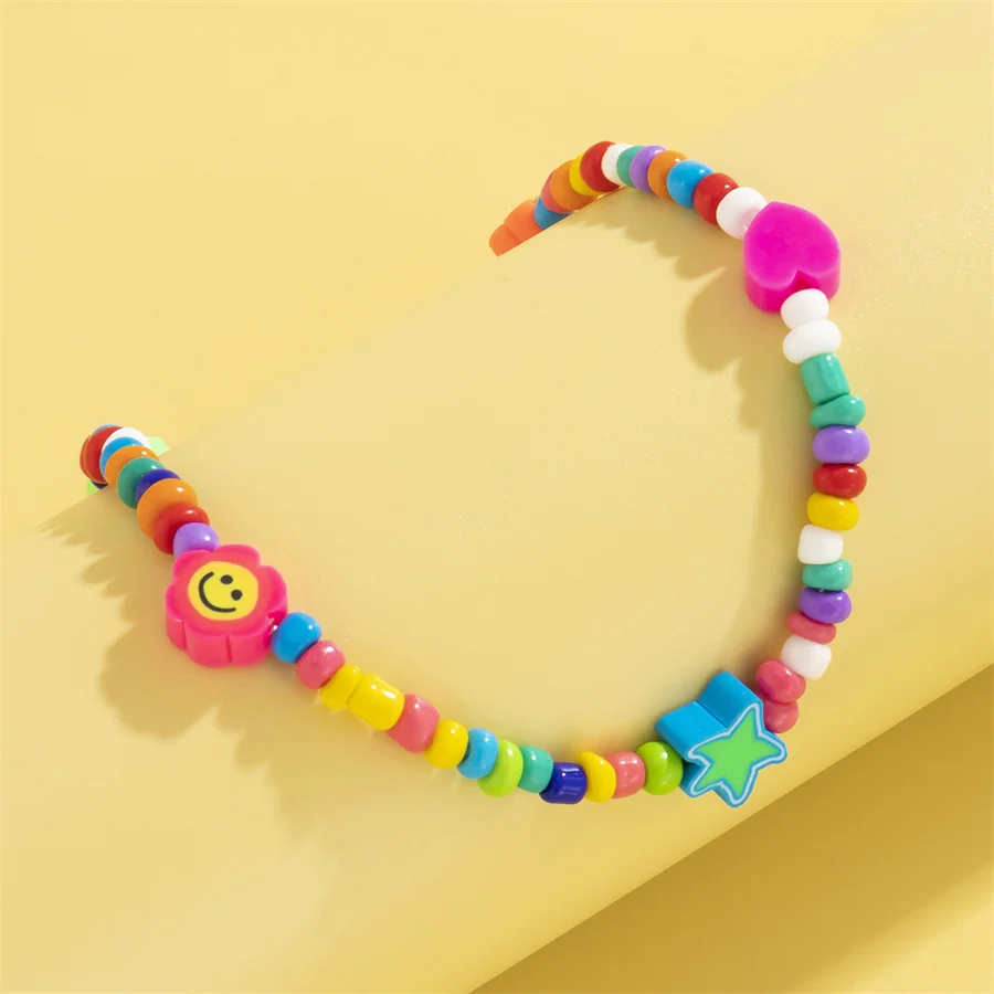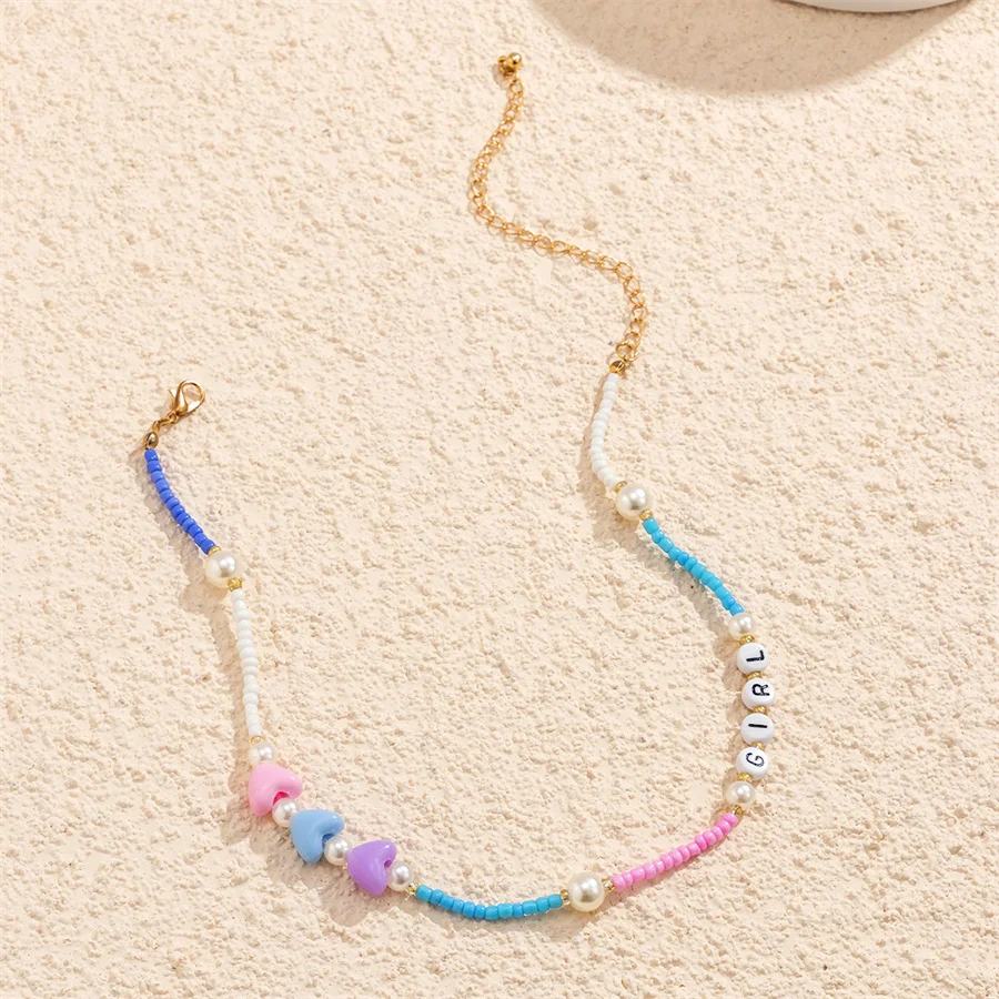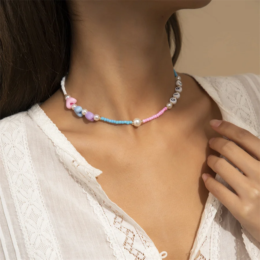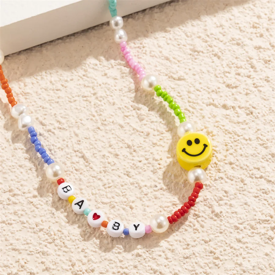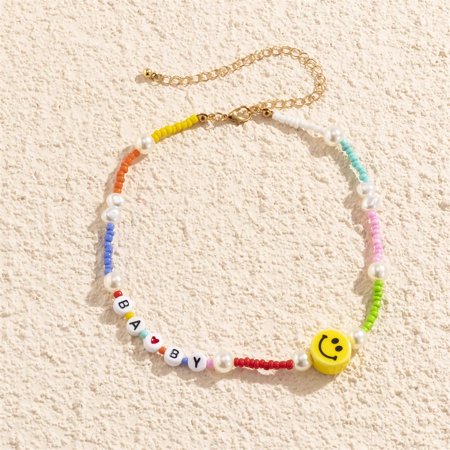 Геометрическая цепочка на шею в национальном стиле ручной работы из бисера цепочка на шею из натурального жемчуга буквы милой девушки улыбки акриловое ожерелье цвета