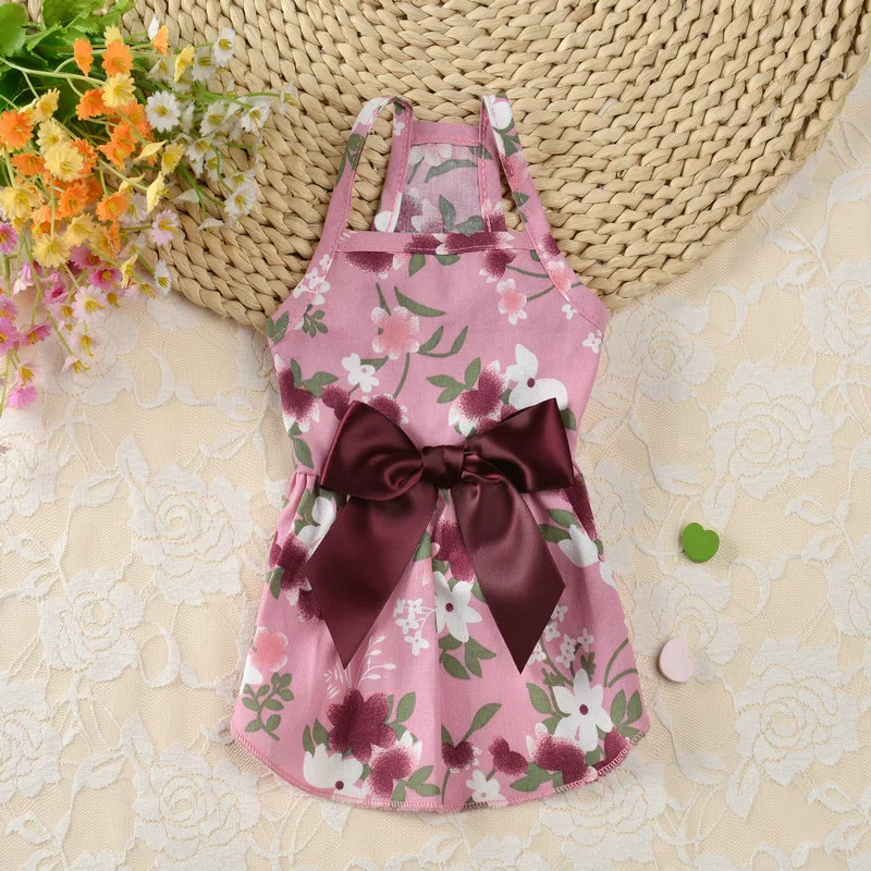 Цветочная юбка, гавайская пляжная одежда для маленьких собак, с бантом, для йоркширского терьера, чихуахуа, летняя одежда для щенков, одежда для собак