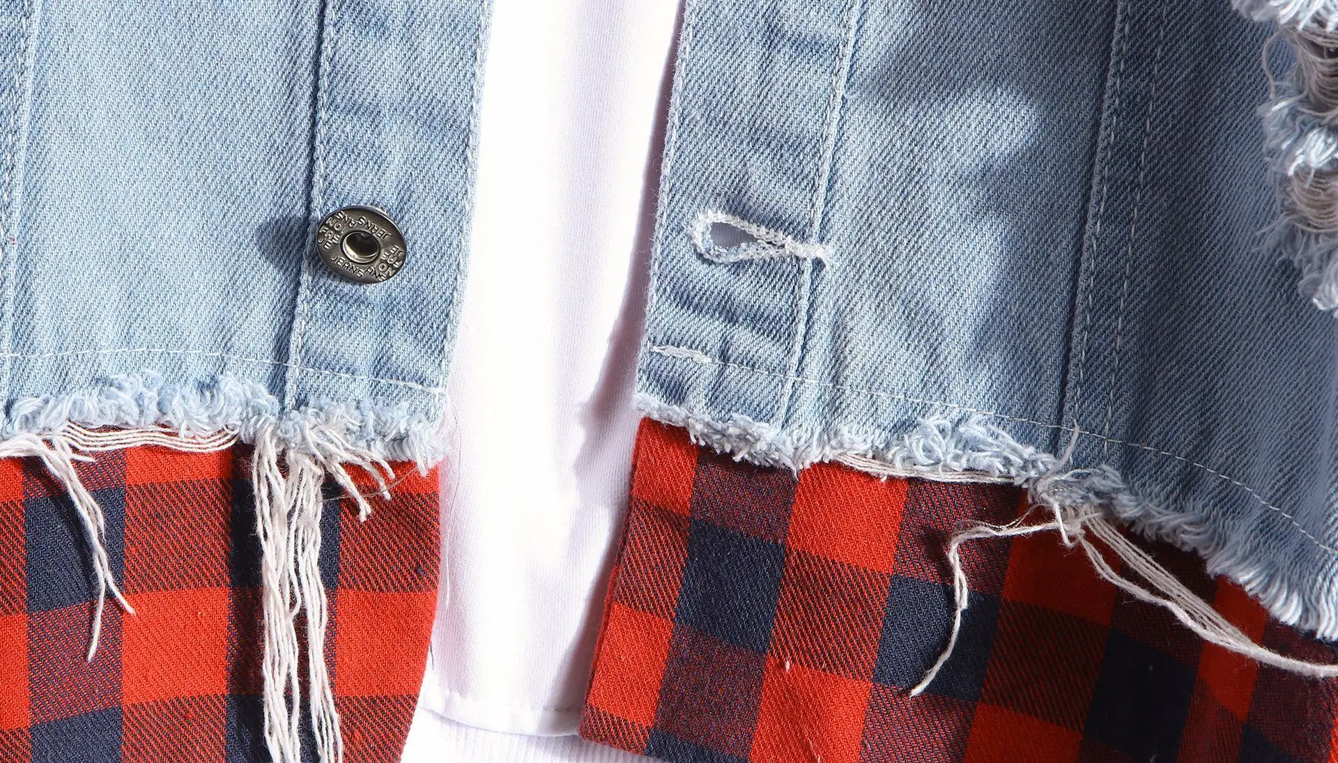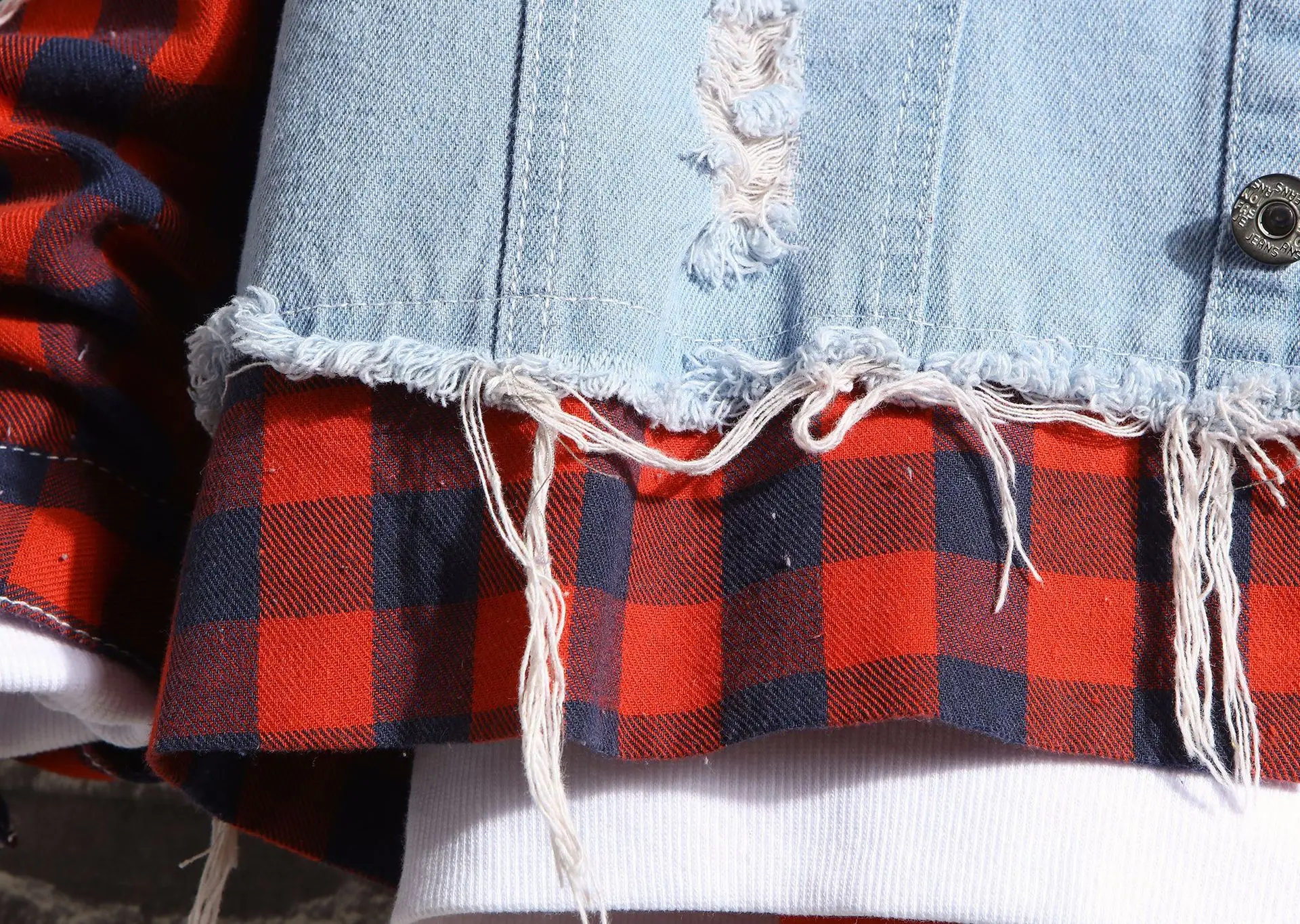 Style1Men's Denim Jacket Men Hip Hop Streetwear Hooded Jacket