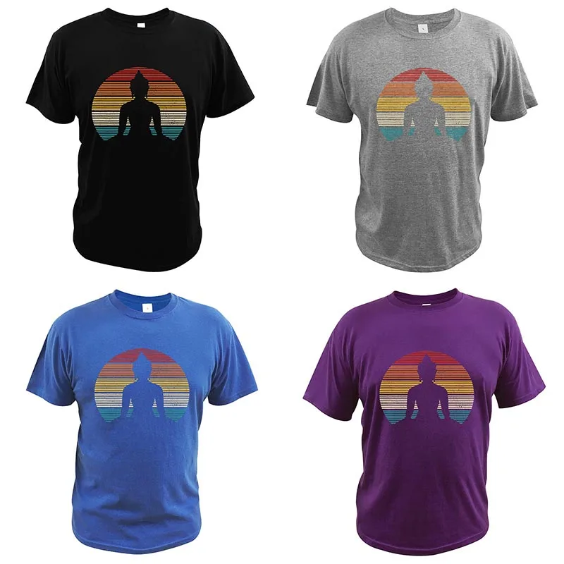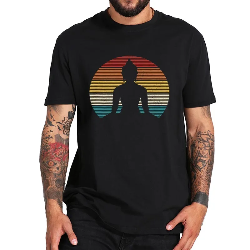 Футболка мужская с принтом Будды, из чистого хлопка, для занятий йогой, медитацией, в винтажном стиле, подарок в стиле ретро, дзэн-буддизм