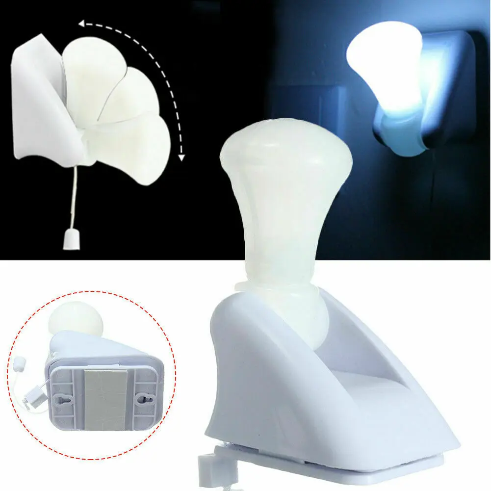 * Тип: Светодиодный настенный ручной ночной Светильник* Шнур вкл/выкл* Цвет: белый (как на изображении)* Материал абажура: ПВХ* Размер: прибл. 80x56x110 мм (Д * Ш * В)* Длина веревки: прибл. 120 мм* Источник питания: 3 шт. батареи AAA (не входят в комплект)