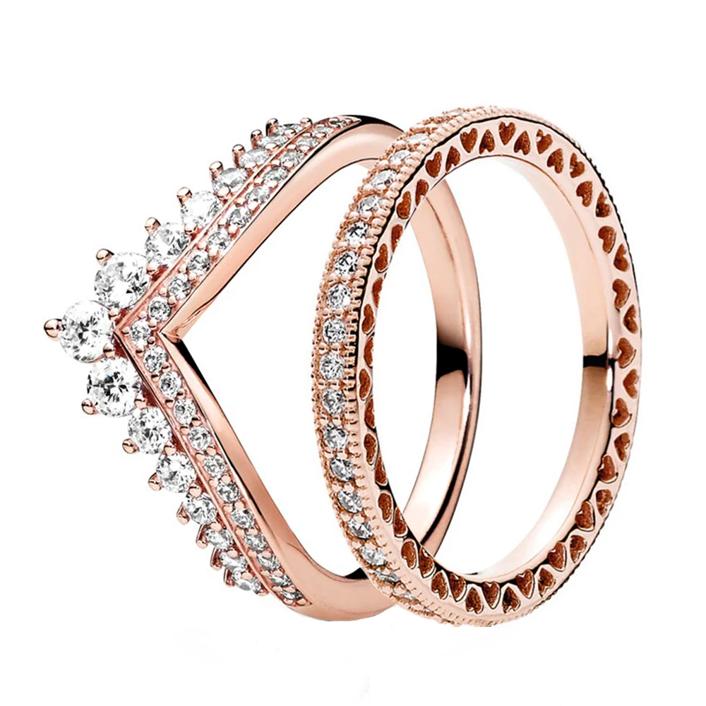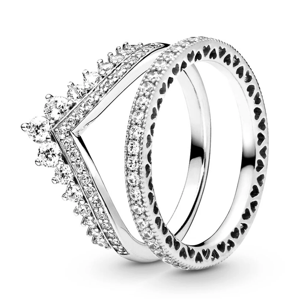 Модные ажурные кольца в форме сердца принцессы, набор колец с блестящим цирконием, Женский обручальный браслет, ювелирные изделия для помолвки, подарки