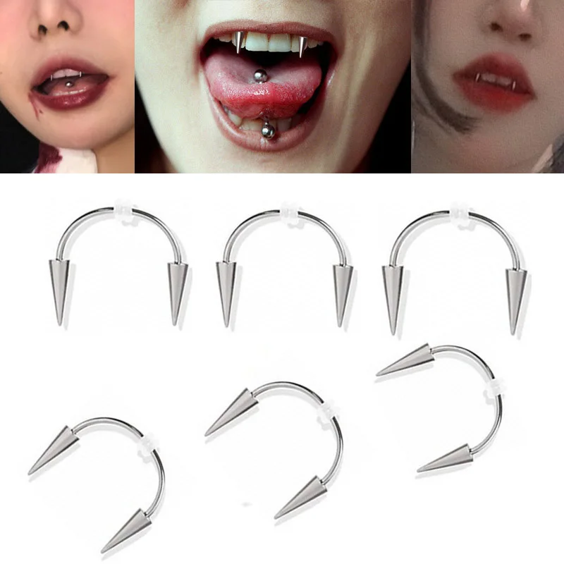 2 шт 16g Спайк губы губная серьга обруч кольцо Зубы вампира хирурги...