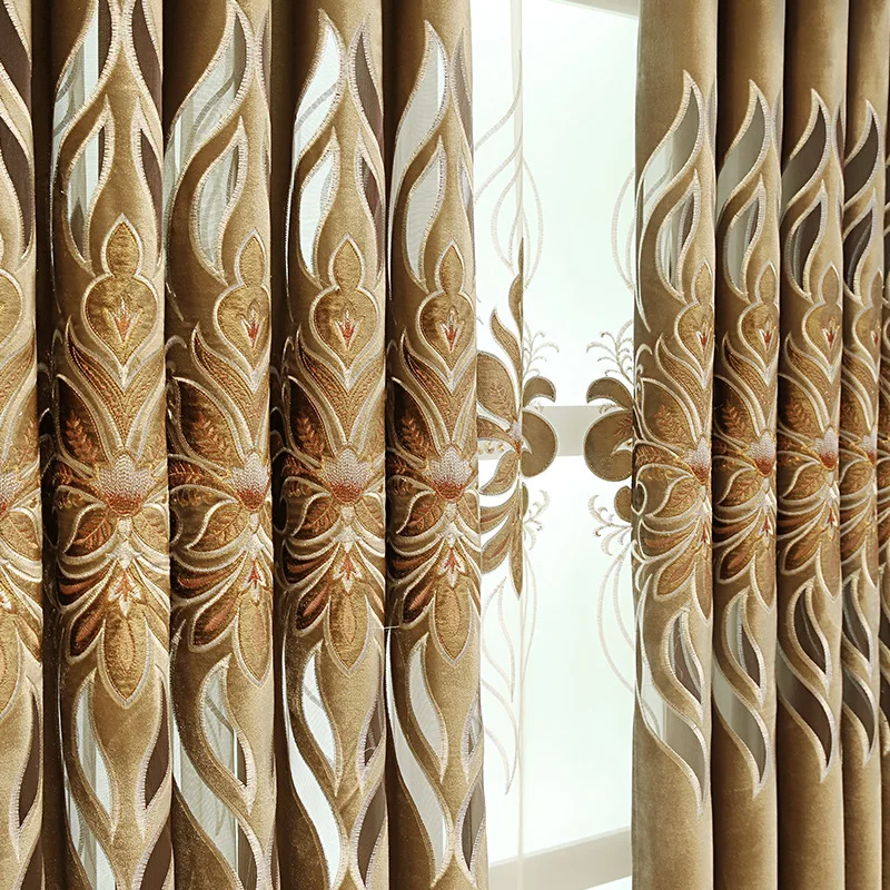 Высококачественные роскошные затемняющие шторы с вышивкой в европей...