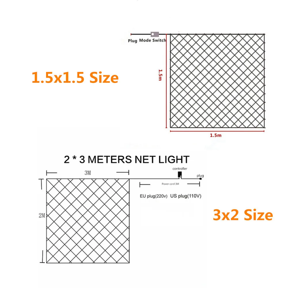 Светодиодные сетчатый занавес сетки Фея светильник на Рождество, для детей возрастом от 3x2 м 200led ЕС 220V вечерние свадебные новый год гирлянды на открытом воздухе украшения сада