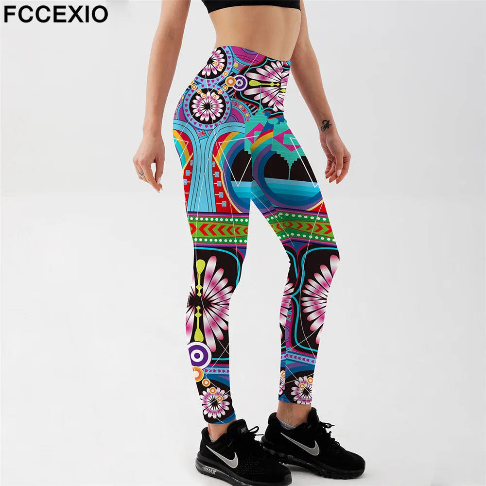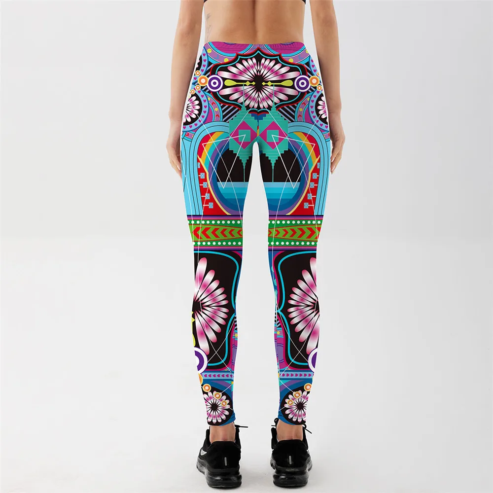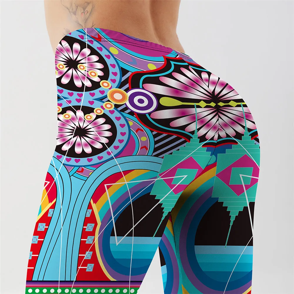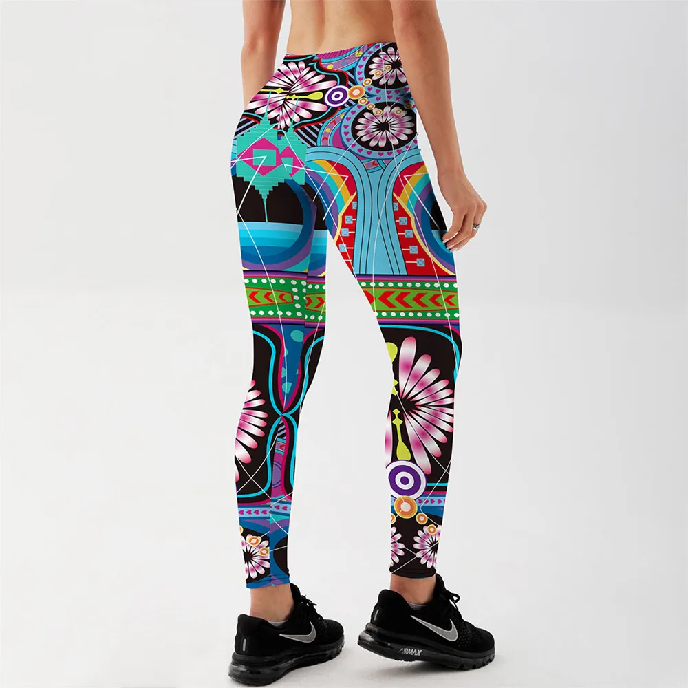 Женские леггинсы с цветочным принтом, в этническом стиле