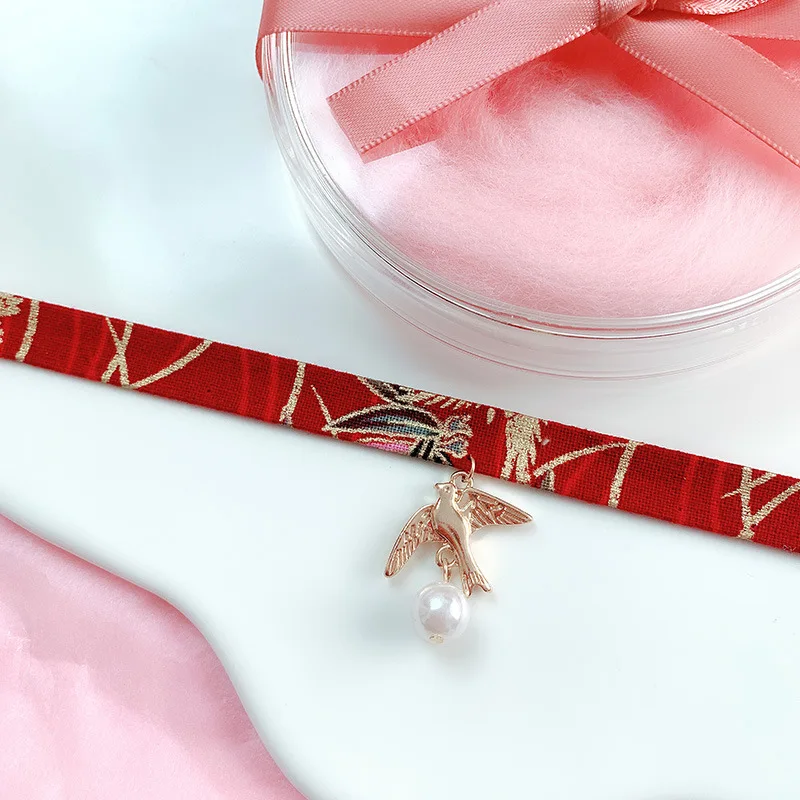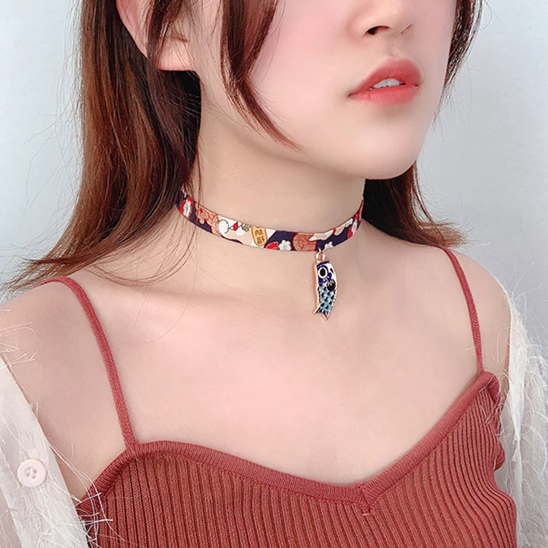 Классический чокер в японском стиле с лентой и веревкой для кукол, милый романтический чокер для женщин и девушек, птица, кошка, карп, искусственное ювелирное изделие, подарки