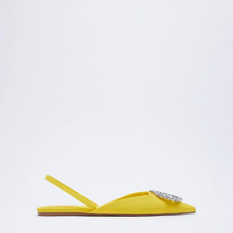 Женские туфли на плоской подошве ZA, элегантные желтые туфли-слингбэки с пряжкой, с острым носком, лето 2021