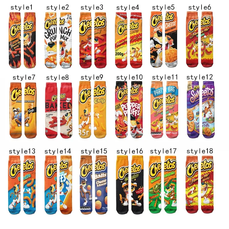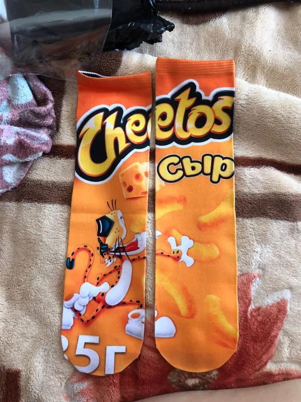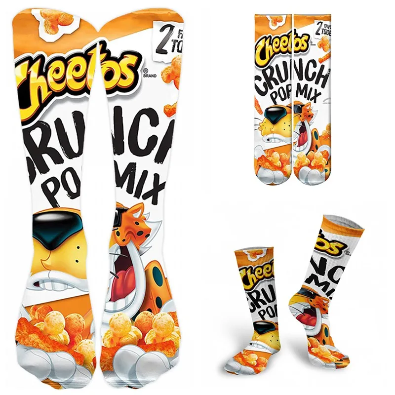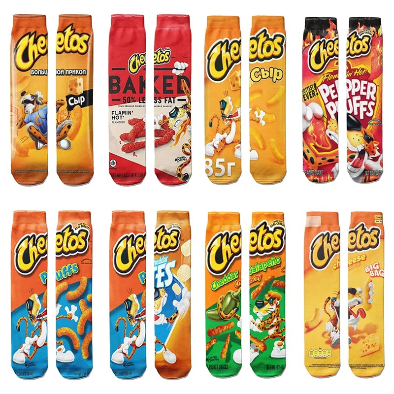 Носки унисекс с забавным 3D-принтом картофельных чипсов, модные повседневные длинные носки в стиле Харадзюку, с упаковки в виде картофеля фри