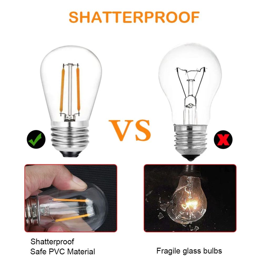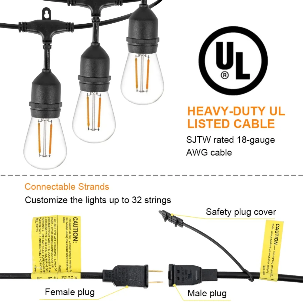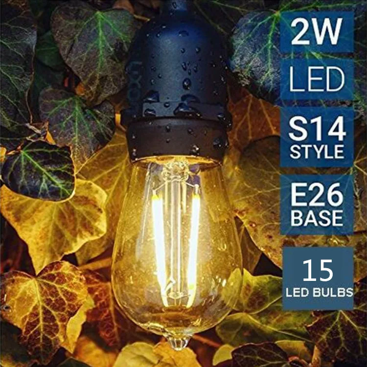 Светодиодная гирлянсветильник S14 с лампочками Эдисона, уличная лампа накаливания для сада, патио, праздничная светильник ная лампа, 15 м, IP65, E26, E27, 48 футов