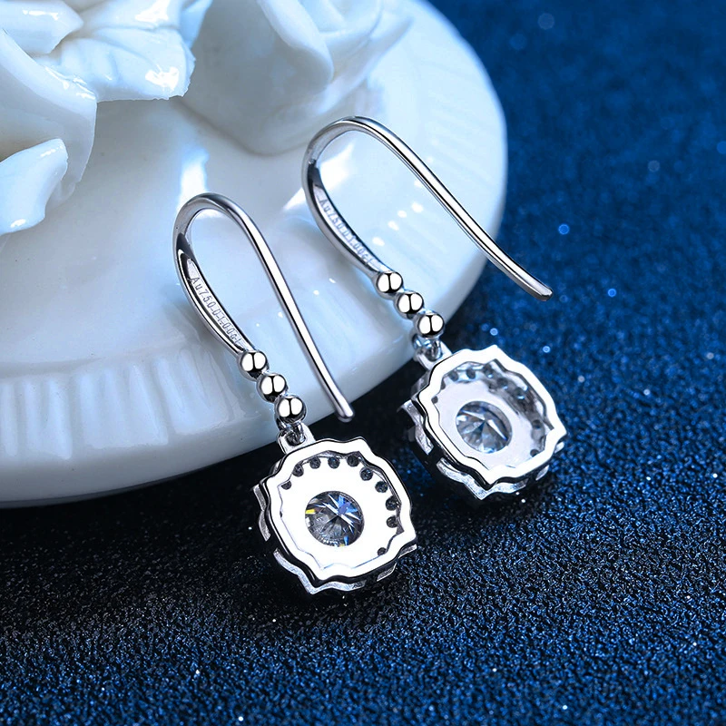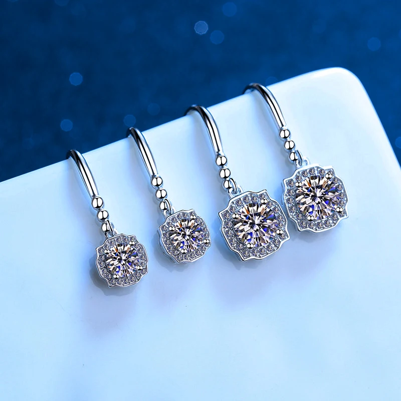 Белое золото 14 карат 0.5 карат муассанит Висячие серьги для женщин 925 Висячие серьги из серебра 925 пробы, ювелирное изделие для помолвки, свадьбы