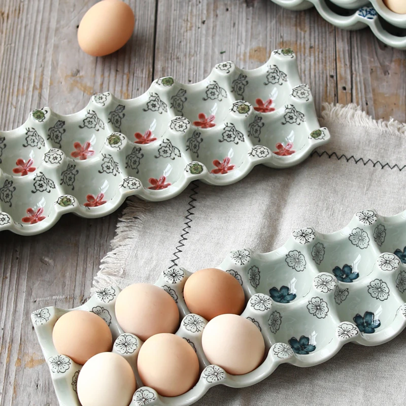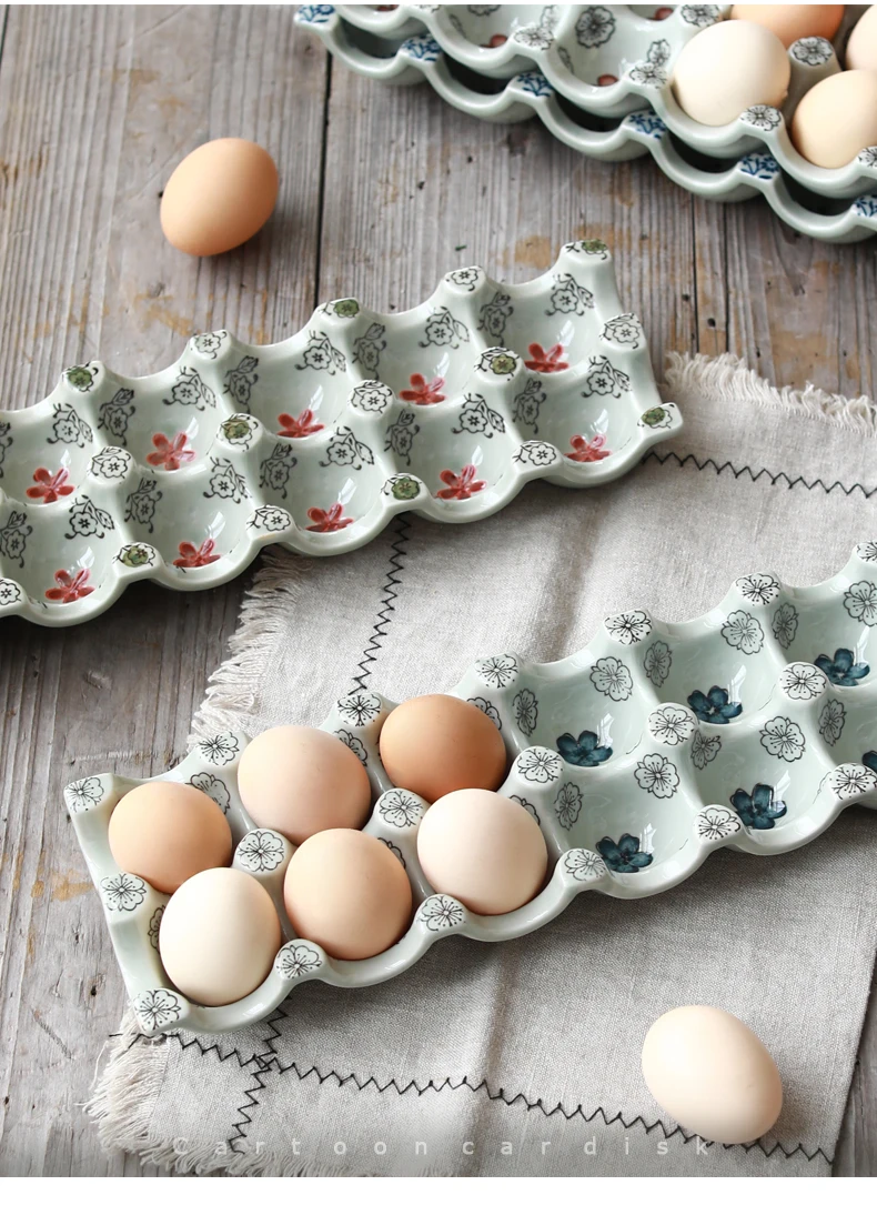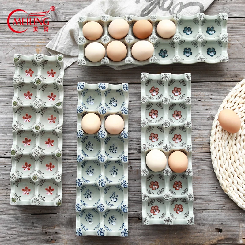 В японском стиле подглазурная керамики лоток для яиц из 12 Сетка пр...