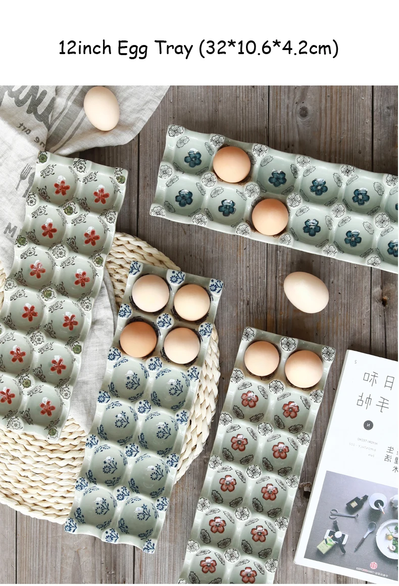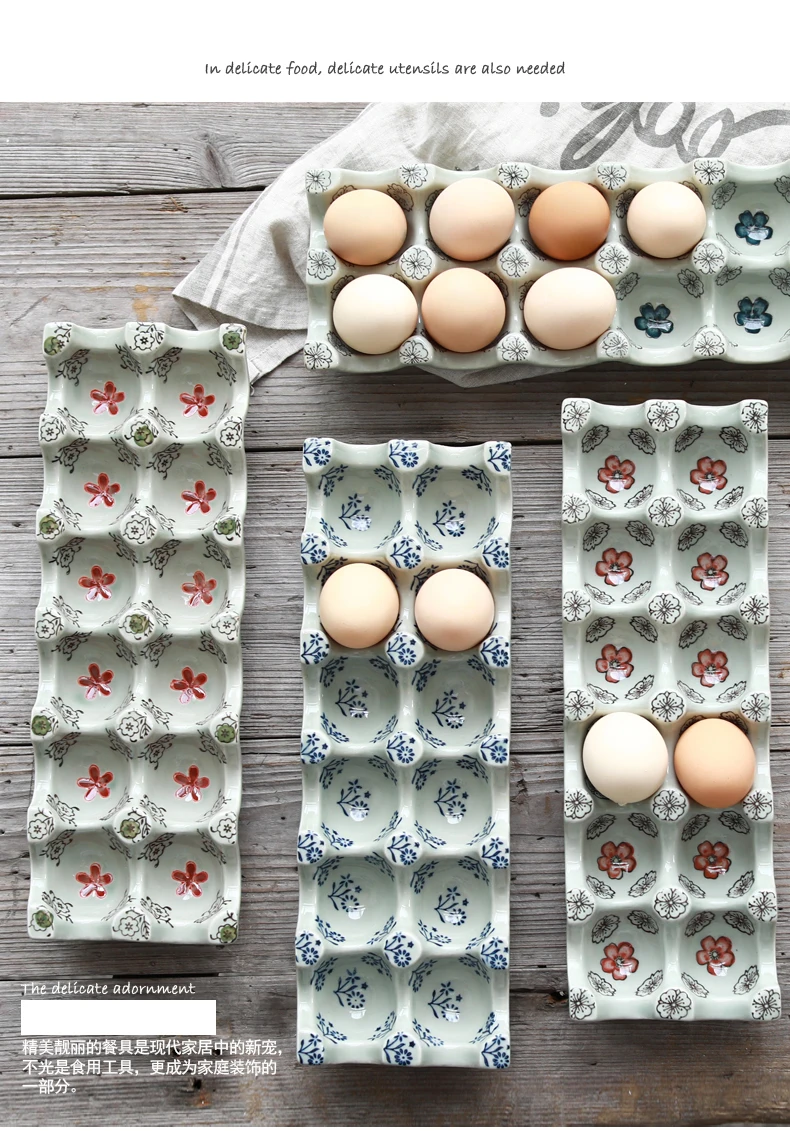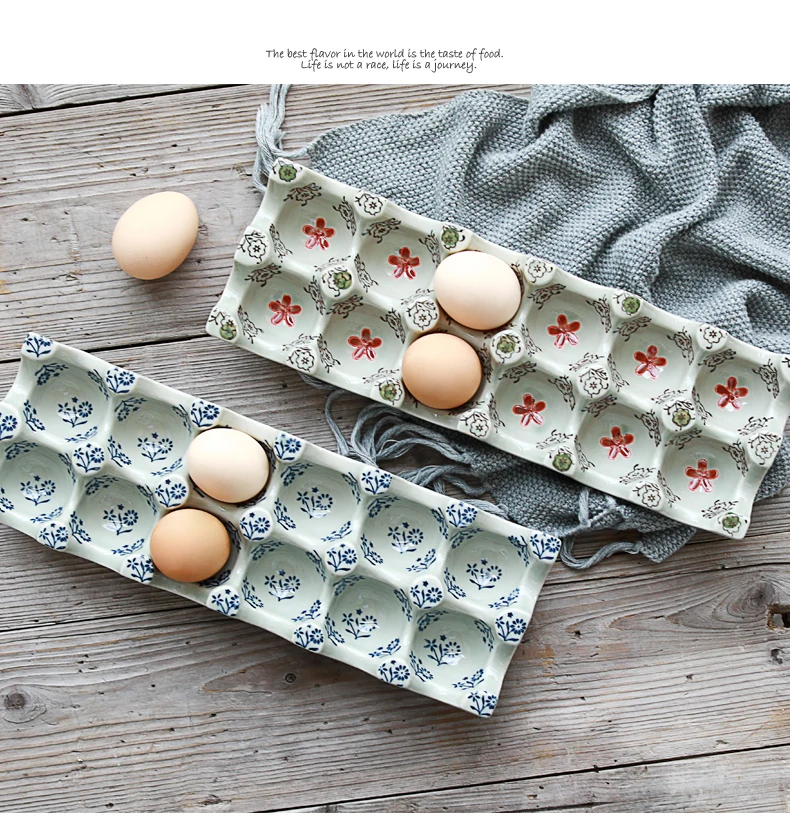Японский прямоугольный контейнер для яиц, 12 ячеек, керамический поддон для яиц подглазурь, декоративный кухонный Органайзер