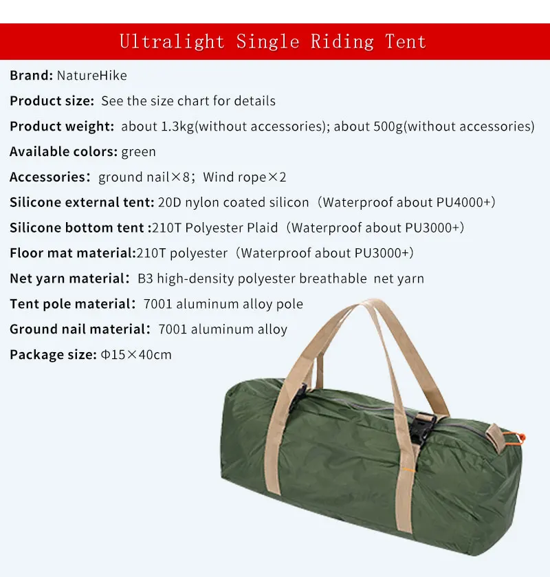 Naturehike 20D зеленые велосипедные палатка двухслойная палатки для кемпинга на открытом воздухе по 4-м временам года для Пеший туризм для пикника с бесплатной коврик NH18A095-D