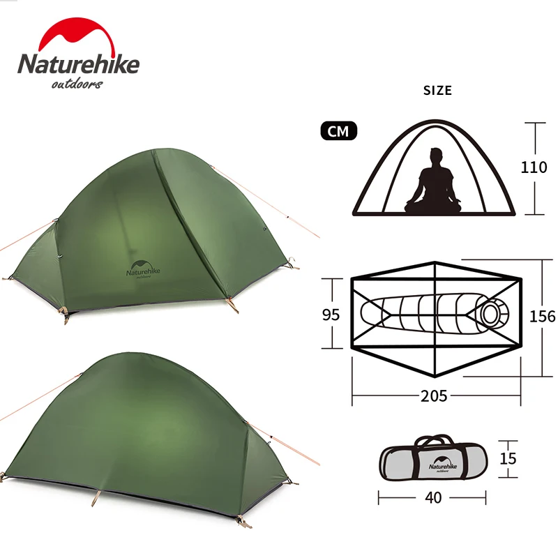 Naturehike 20D зеленая велосипедная палатка двухслойная походная палатка 4 сезона для пешего туризма пикника с бесплатным ковриком NH18A095-D