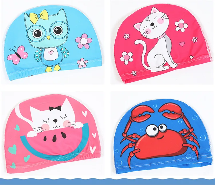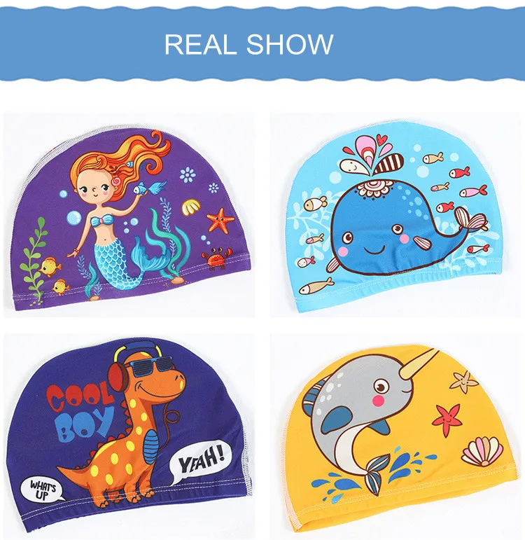 Шапка для плавания детская из эластичной ткани, мультяшная шапка для плавания в бассейне, для водных видов спорта, для защиты ушей, головной убор для купания, кепки для мальчиков и девочек