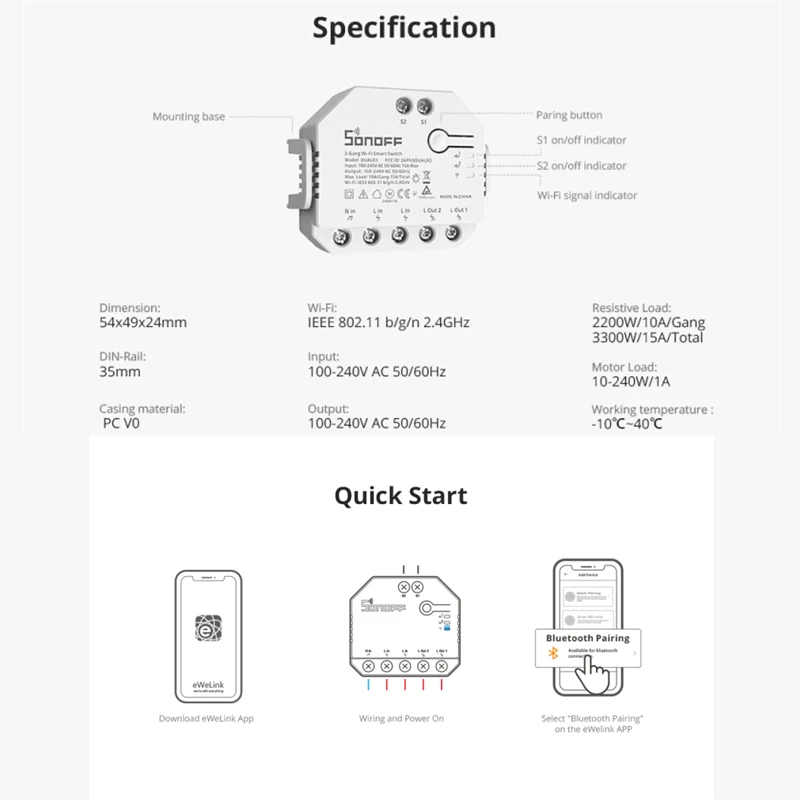 SONOFF DUALR3 выводит ваш дом на следующий уровень. DUALR3-это встроенный модуль беспроводного двойного реле Wi-Fi, который устанавливается за любым стандартным переключателем для передачи его в умный переключатель для беспроводного дистанционного управления с помощью мобильных устройств или голосовой команды. Объединяя ваши бытовые приборы в интегрированную беспроводную сеть, чтобы они общались друг с другом, что удобно для вас управлять и контролировать, включая свет, бытовую технику и моторизованные объекты, такие как рольставни, оконные оттенки, жалюзи, тенты и т. Д. Это сертификат TUV, который обеспечивает надежное количество и улучшенную безопасность, Не беспокойтесь о потенциальном риске пожара и перегрева.Голосовое управление Siri. Создав ярлык Siri в eWeLink, который позволяет управлять занавесками своим голосом. Даже вы можете создать умную сцену, чтобы сохранить связь с другими устройствами в вашем доме, например, попросите Siri закрыть занавес, чтобы включить светильник L1 Lite для съемки фильма ночью дома.