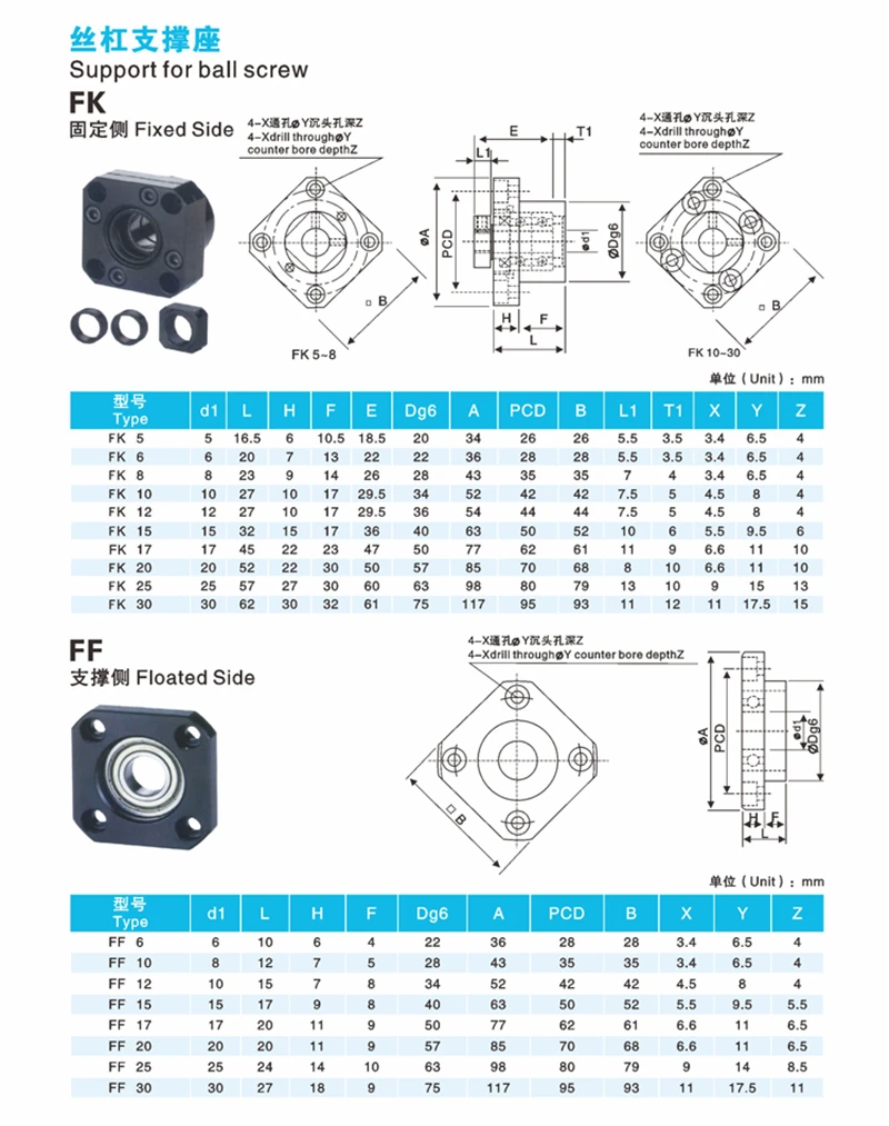 Блок поддержки шариковых винтов для шариковых винтов SFU1605 SFU120...