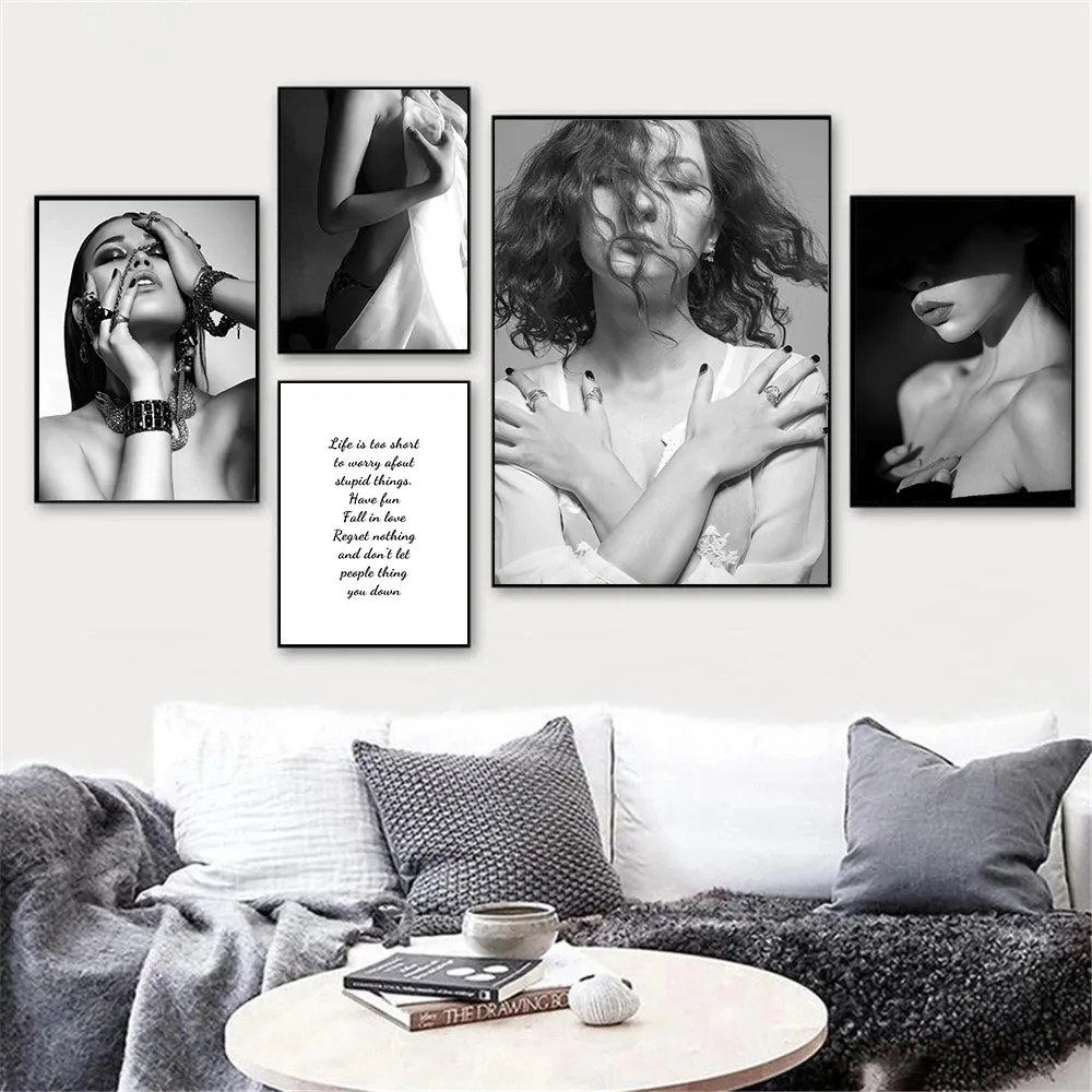 Современные черно-белые художественные принты на холсте постер сексуальной женщины Рисование цитаты настенная печать в скандинавском стиле настенные картины декор для гостиной