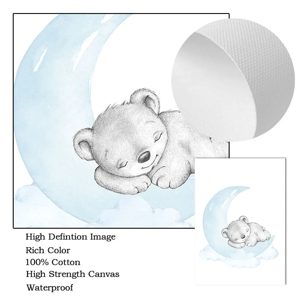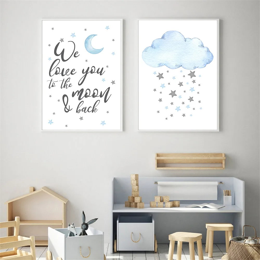 Голубая звезда облако Луна холст постер детский животный медведь печать детская настенная живопись цитаты скандинавский Настенный декор для детской комнаты