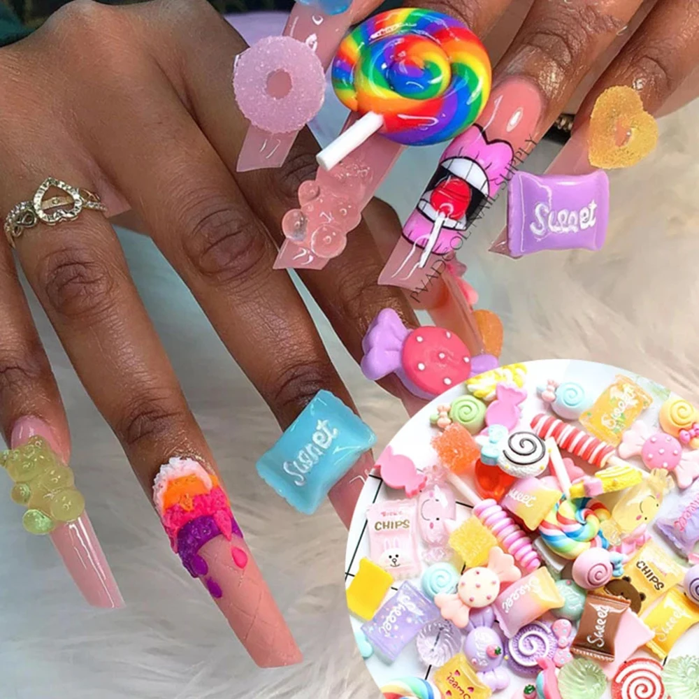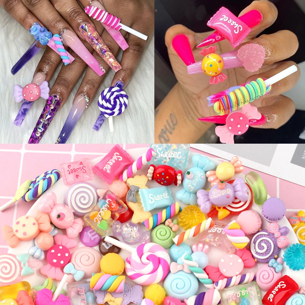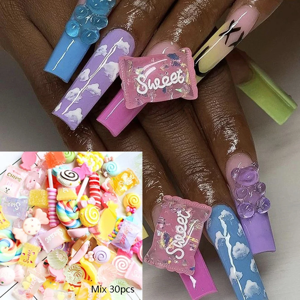 30 шт.компл. микс 3D кавайный дизайн ногтей декорации Конфета Ассорти Шарм Смешанная смола для акриловых ногтей Красота Стразы украшения Советы