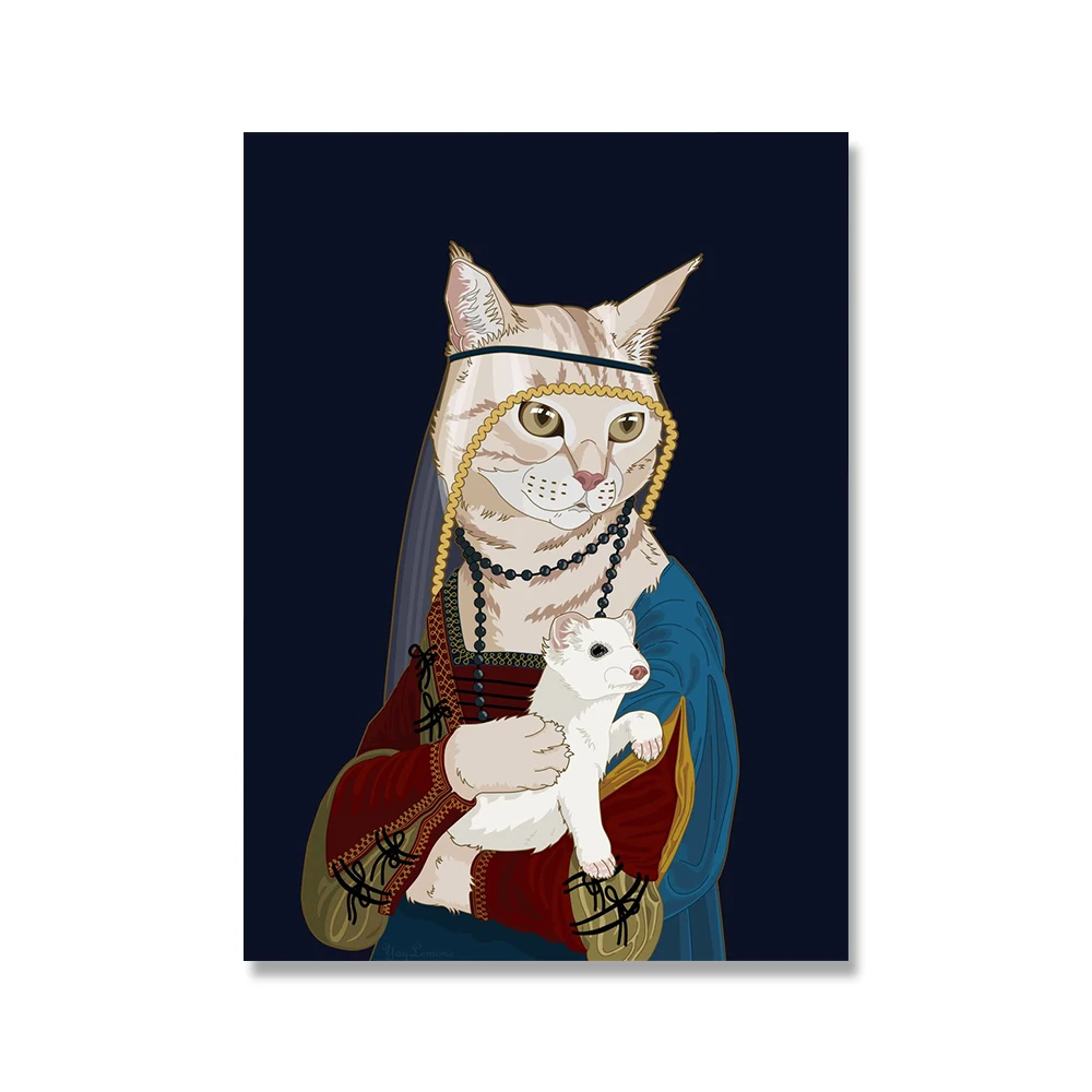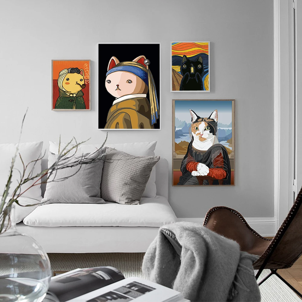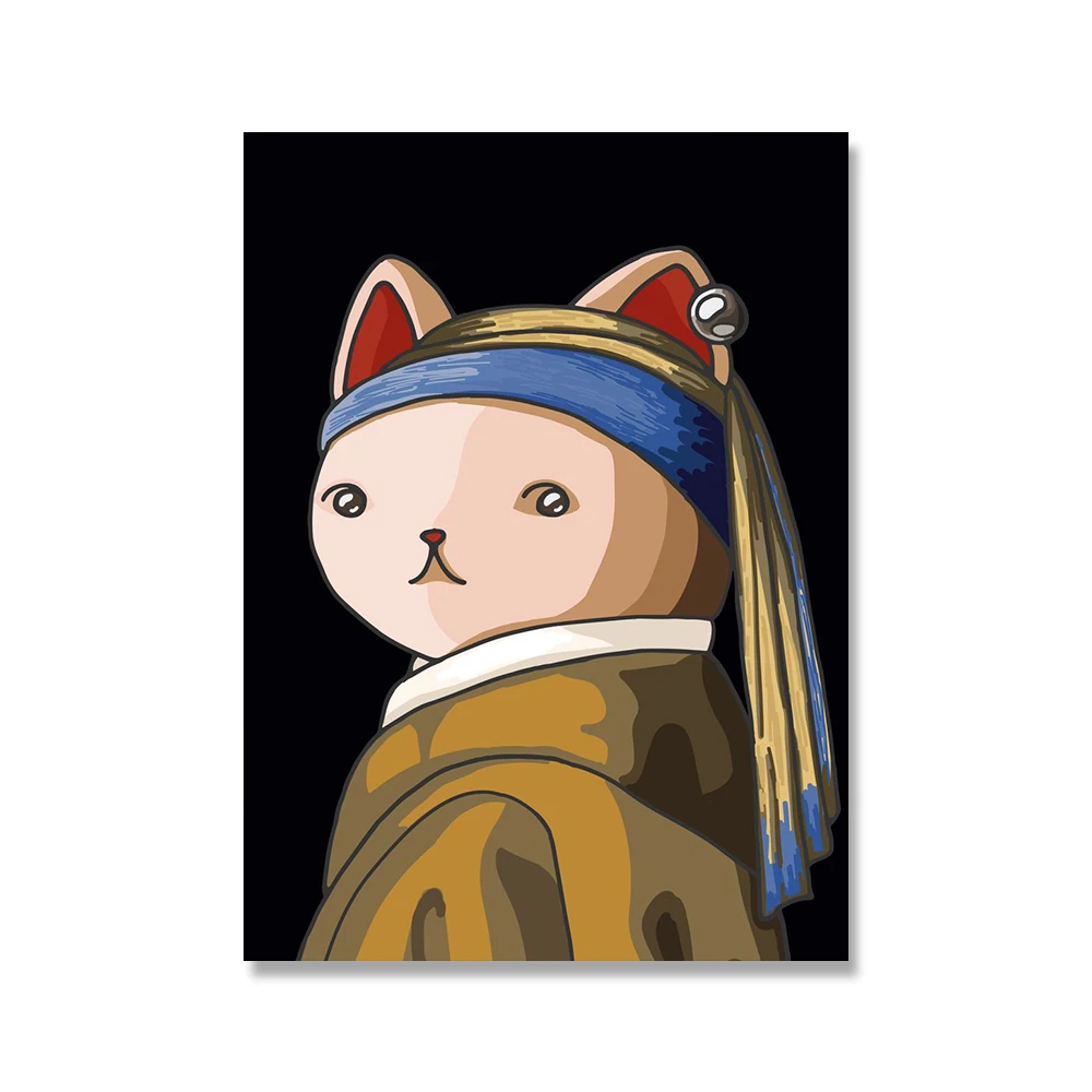 Картина Винсента мультфильм Кот леди холст постер моралиса Забавный принт Кот в жемчуге серьги настенное искусство картины декор детской комнаты