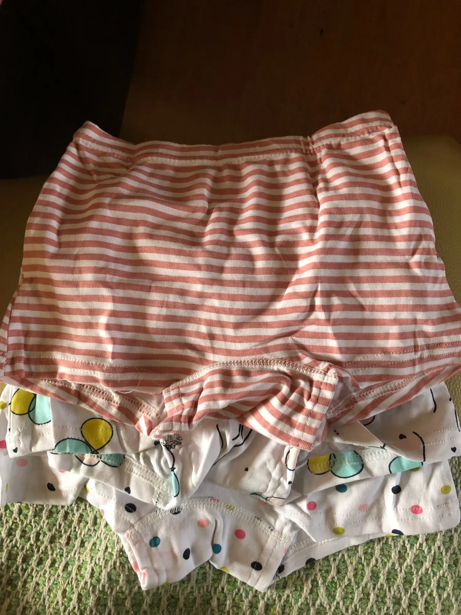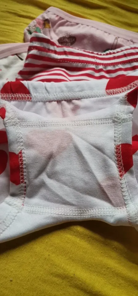 Ткань хорошая. Но вот швы на ластовице не скрытые, а бельевые. Не уверенна, что дочка не откажется носить она в этом деле капризная. Просила продовца положить все белые трусики, он ответил, что это не возможно( ну да ладно.. На ребёнка 2, 5 года, 12,5кг 89см трусики свободно ваты, но носить можно, единственное когда одеваешь узковатые штаны, то трусики скатывается вверх. Но я их брала под платья.