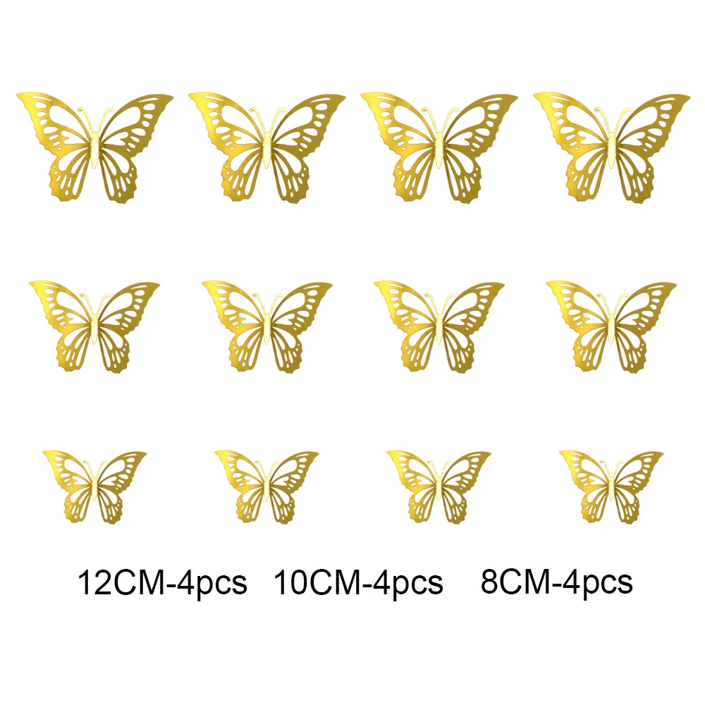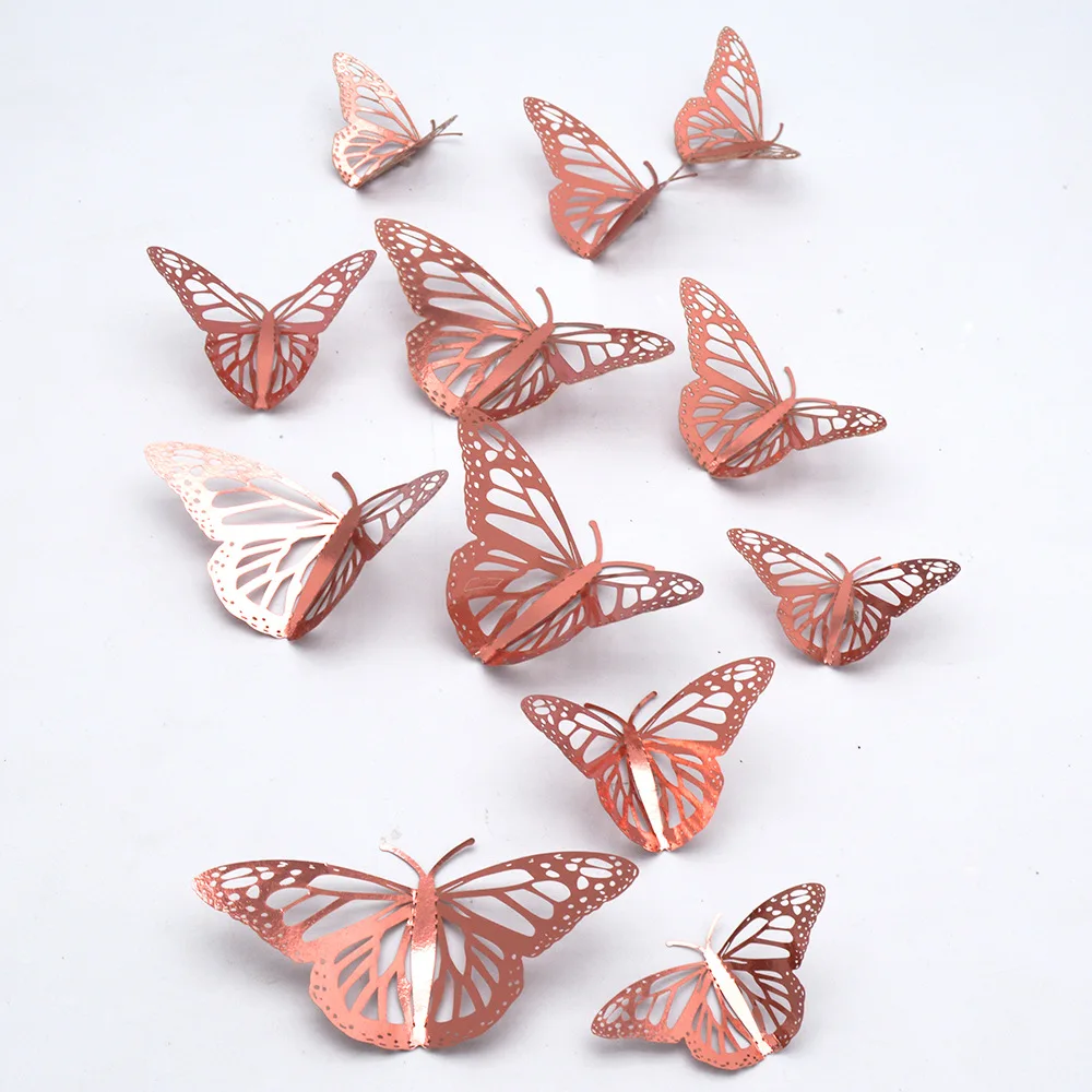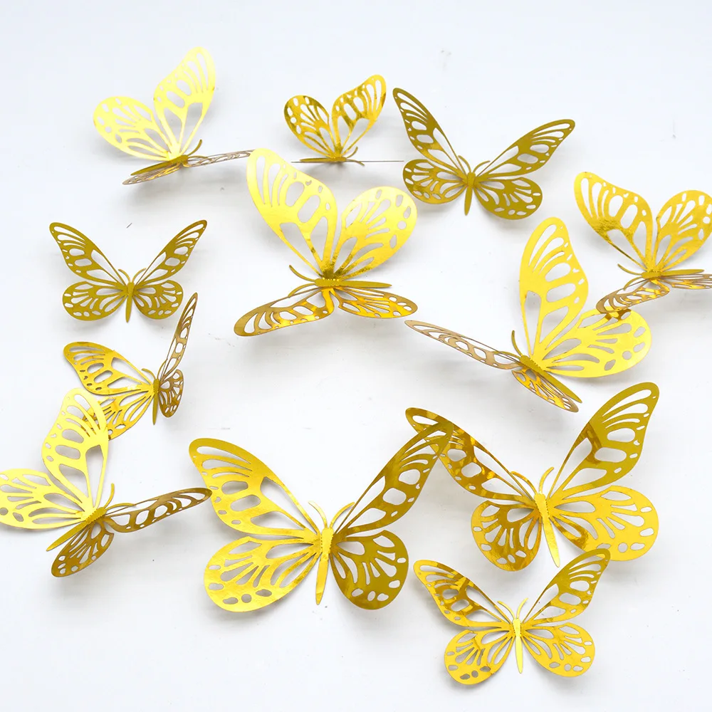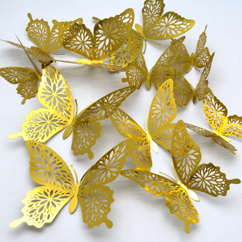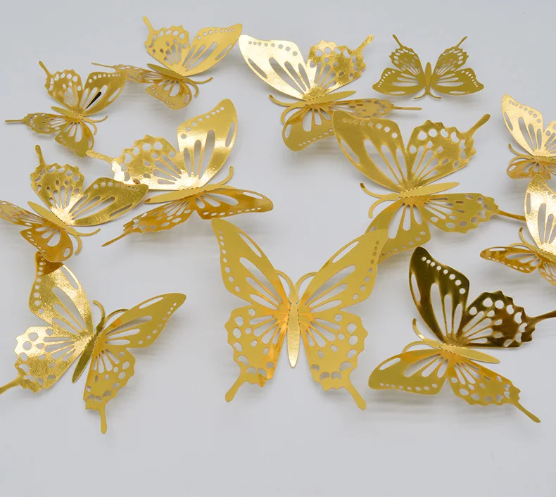 12 шт., объемные настенные наклейки-бабочки с металлической текстурой