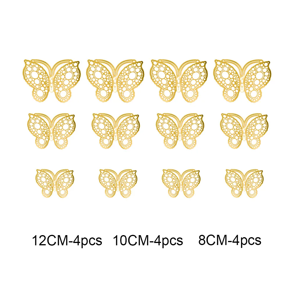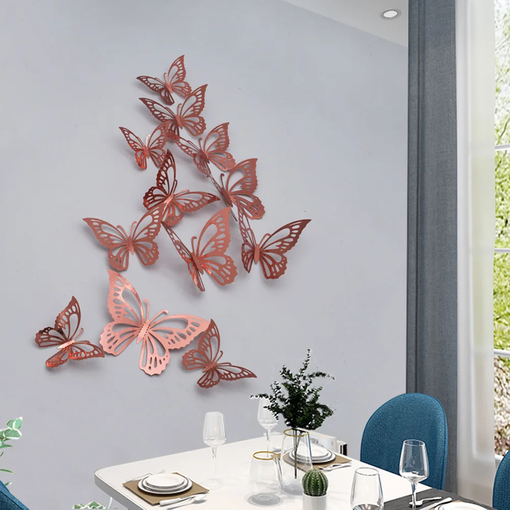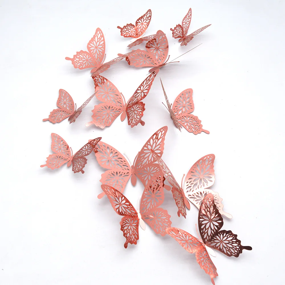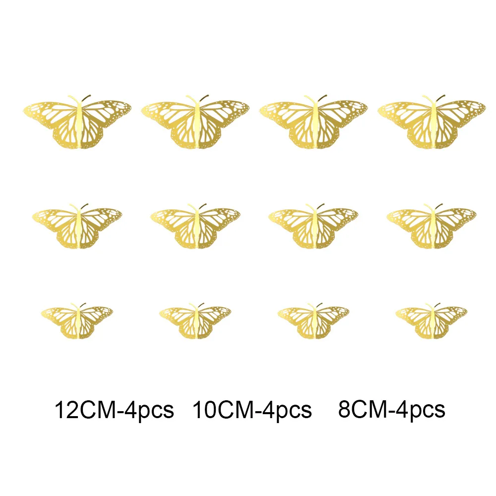 12 шт., объемные настенные наклейки-бабочки с металлической текстурой