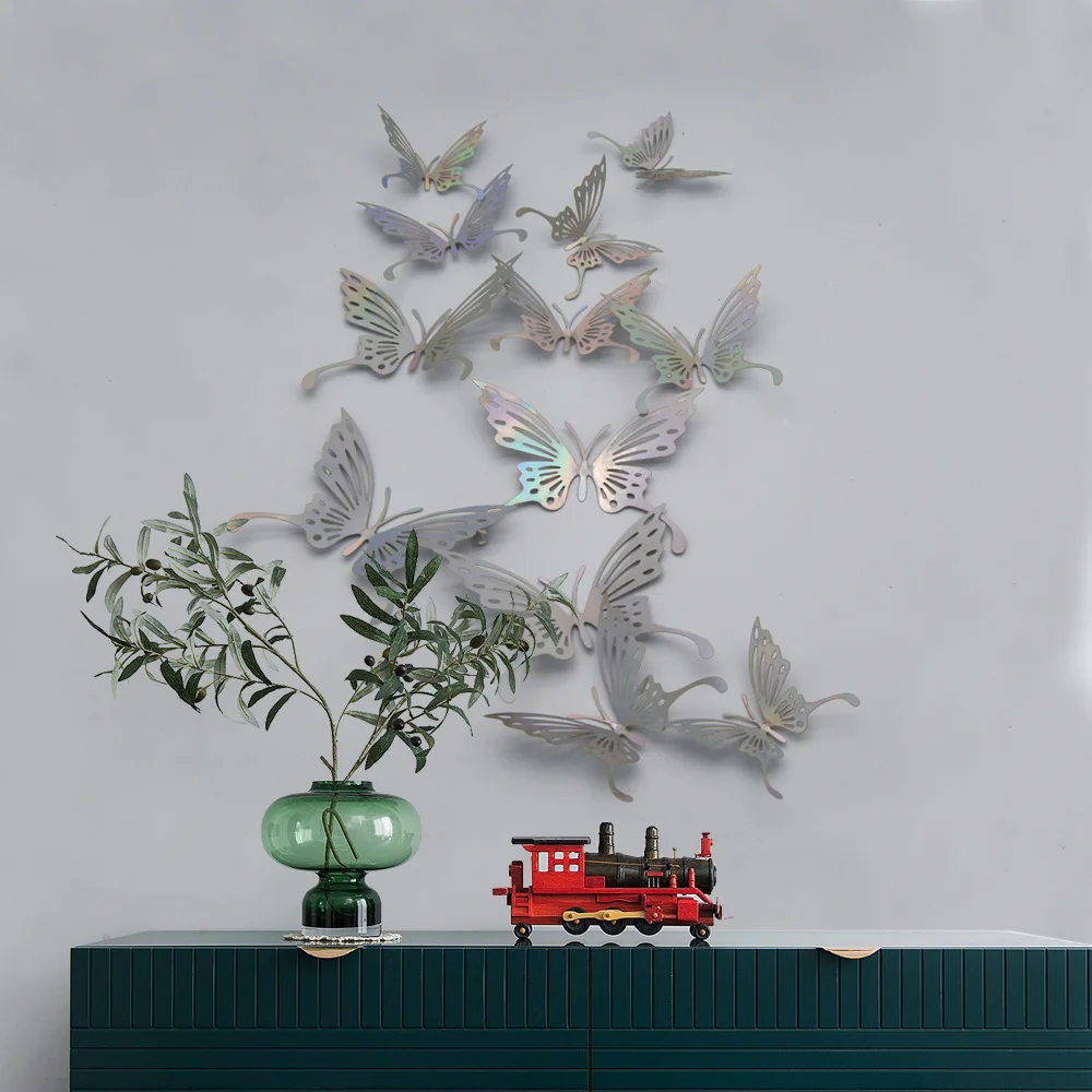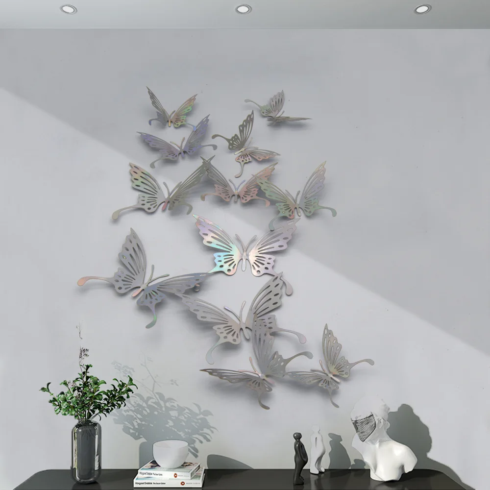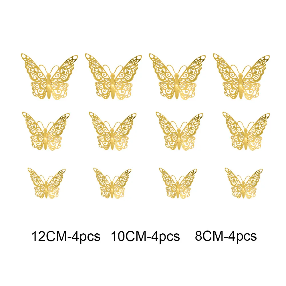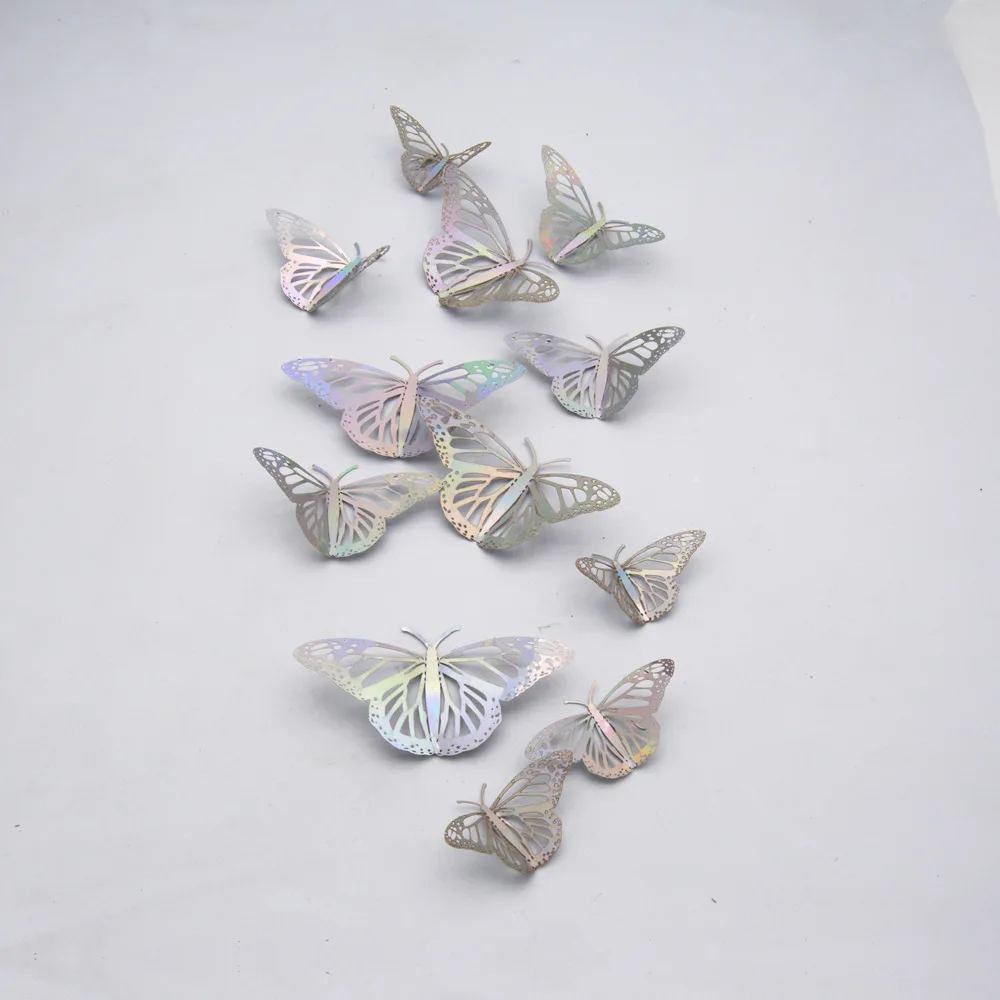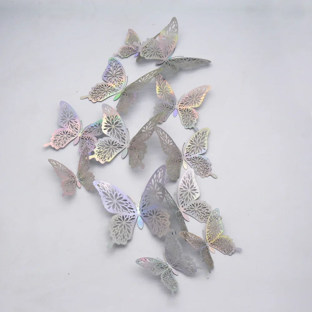 12 шт., объемные настенные наклейки-бабочки с металлической текстурой