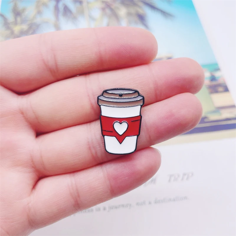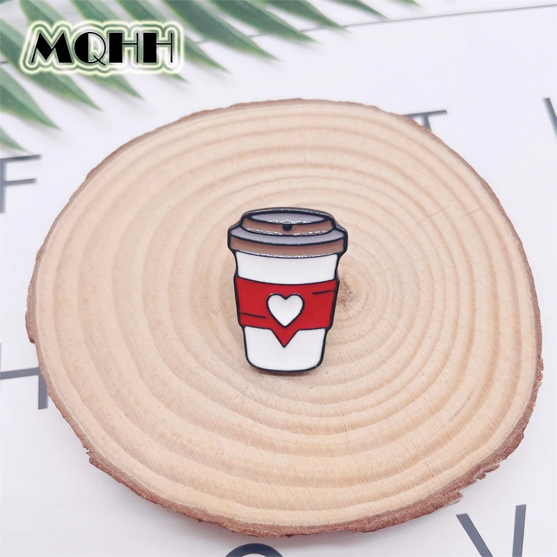 Мультяшные милые эмалированные булавки в виде красной чашки с молоком, чашки кофе, Милые Броши из сплава в виде сердечек, Значки для одежды, рюкзака, аксессуары, ювелирные изделия, подарки