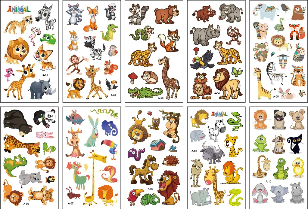 Новая мода, 10 шт., мультяшный семейный набор, временная татуировка...