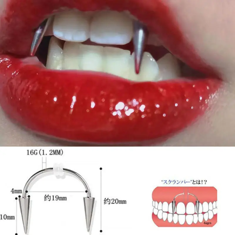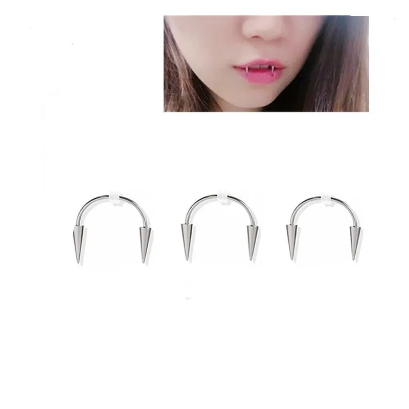Готические медицинские зубные ногти из нержавеющей стали Пирсинг губ Дракула гвоздики Косплей Зубы вампира ювелирные изделия зажимы для ногтей с улыбкой
