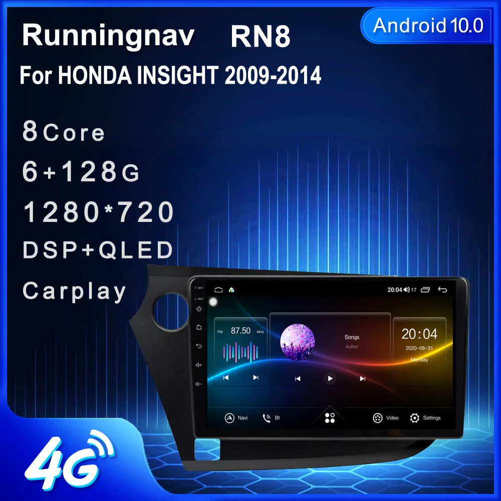Автомобильное радио, мультимедийный видеоплеер, GPS-навигатор Runningnav для Honda Insight LHD 2009-2014, Android