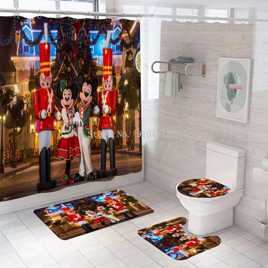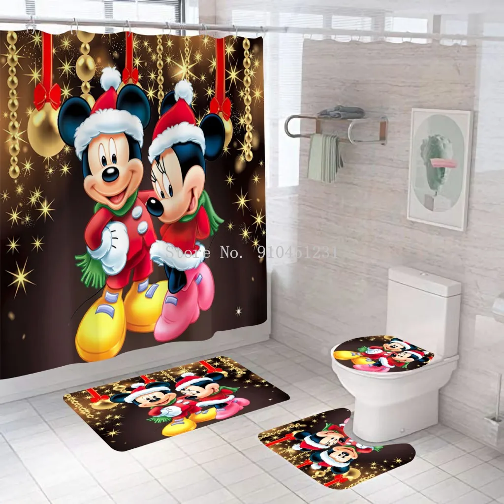 Набор занавесок для душа с Микки и Минни Маусом, Нескользящие коврики для ванной, коврик для туалета, крышка, коврик для детей, мальчиков и девочек, декор для пар, подарки