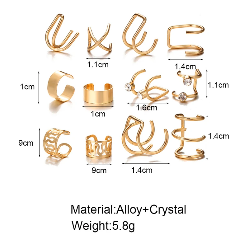12 шт. Кафф для ушей, золотые клипсы для ушей без пирсинга, поддель...