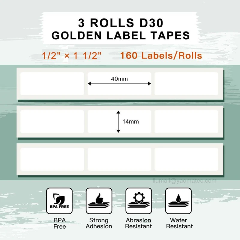 Клейкие этикетки для термопечати D30, 14 х40 мм, 3 рулона, 480 шт.