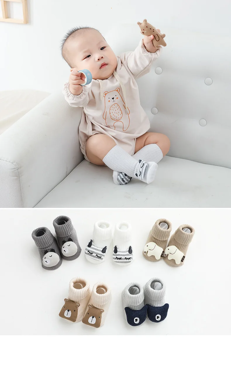 Одежда для новорожденных детская одежда; Сезон осень-весна-зима; Мягкие хлопковые носки для девочек с рисунками животных из мультфильмов для младенцев, для маленьких мальчиков носки-тапочки с нескользящей подошвой