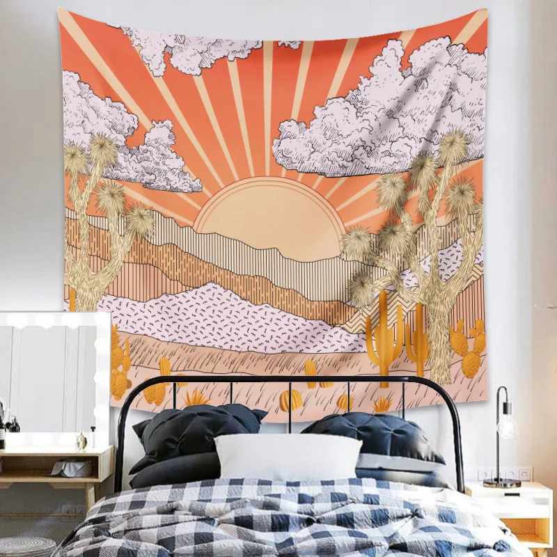 Защита от солнца гобелен с пейзажем Абстрактная живопись эстетическое горный стене висит кактус психоделические бохо стиле Общежития ковер украшение Фреска