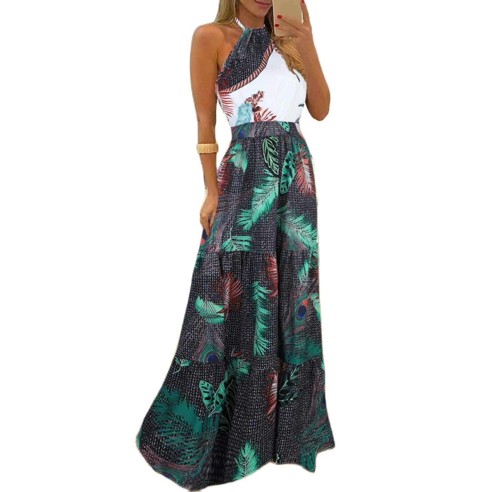 Женское длинное платье с лямкой на шее, повседневное богемное плать...