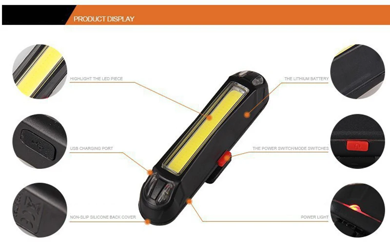 Описание:① USB перезаряжаемая велосипедная Хвостовая лампа, встроенный литиевый аккумулятор, usb-зарядка, автоматически отключится при полной зарядке.② Лампа небольшого размера, весовой светильник, легко переносится, переносится для езды, езды на велосипеде и многого другого.③ Светодиодный задний фонарь для велосипеда с противоскользящей силиконовой защелкой, легко устанавливается, не повреждает корпус.④ Отделение для удостоверения личности-высокое качество светодиодный светильник бусины используются для велосипеда сигнальная лампа, который обладает высокой яркостью, низкое потребеление энергии, энергосбережения и защиту окружающей среды.⑤ Велосипедная лампа имеет супер водонепроницаемое свойство, поэтому вы можете свободно ездить независимо от того, солнечный или дождливый.⑥ Существует множество режимов освещения и цветов на выбор, которые могут использоваться в качестве предупреждающих огней.