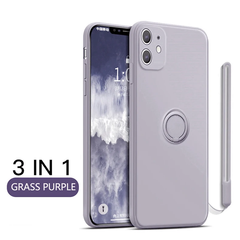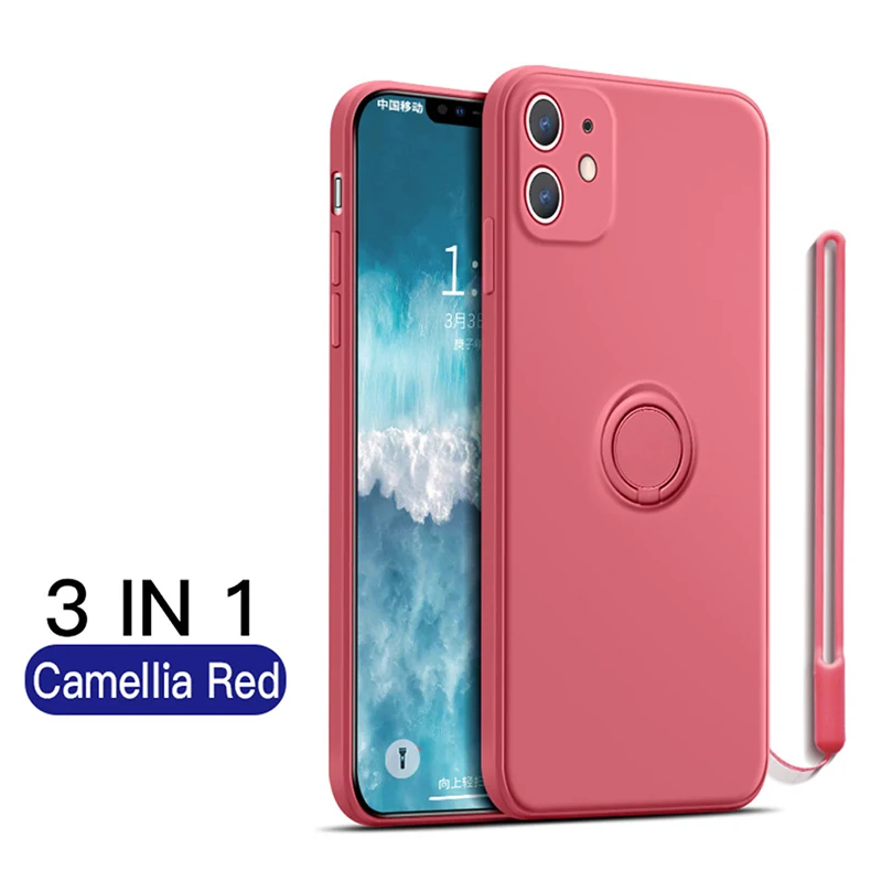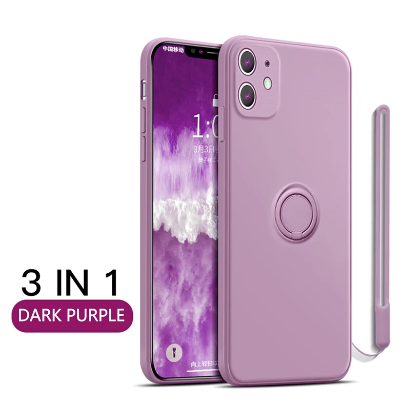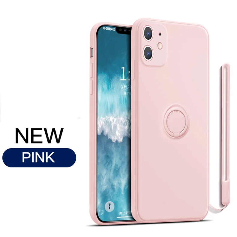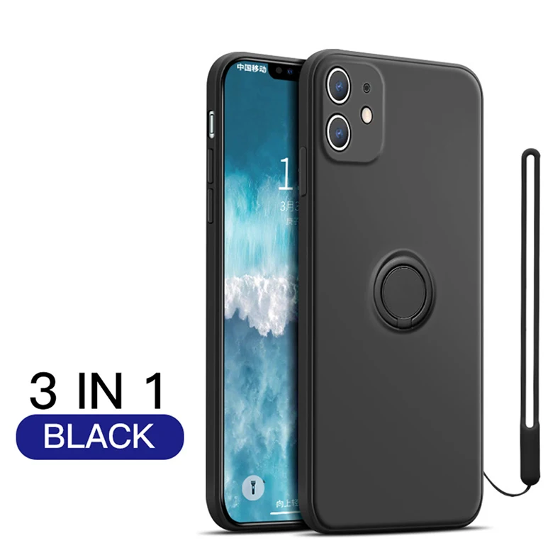 Квадратный Мягкий силиконовый чехол для телефона с ремешком для iPhone 13 11 12 Pro Max XS Max XR 7 8 Plus Магнитный кольцевой держатель противоударный чехол