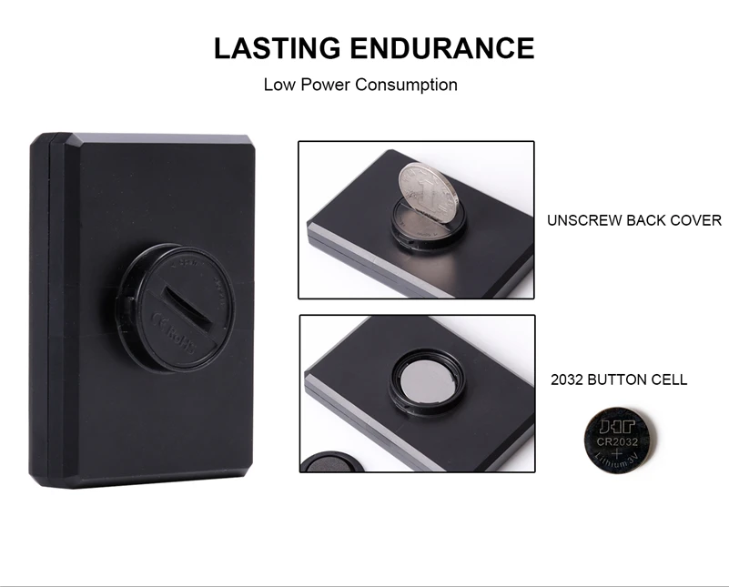 Длительный срок службы батареи, низкое потребление Только одна кнопка 2032, низкое потребление и длительная выносливость, откройте крышку аккумулятора с помощью монеты Перед использованием выньте изоляционный лист в изделии.
