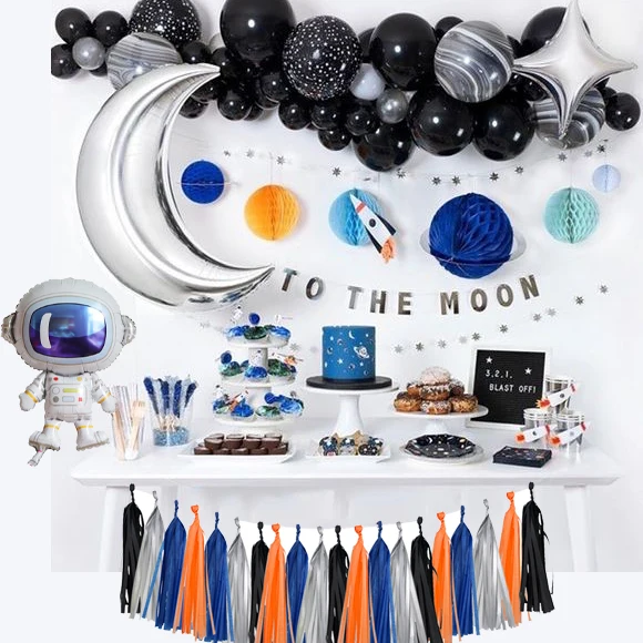 Набор одноразовой посуды для космической вечеринки, набор шариков и...