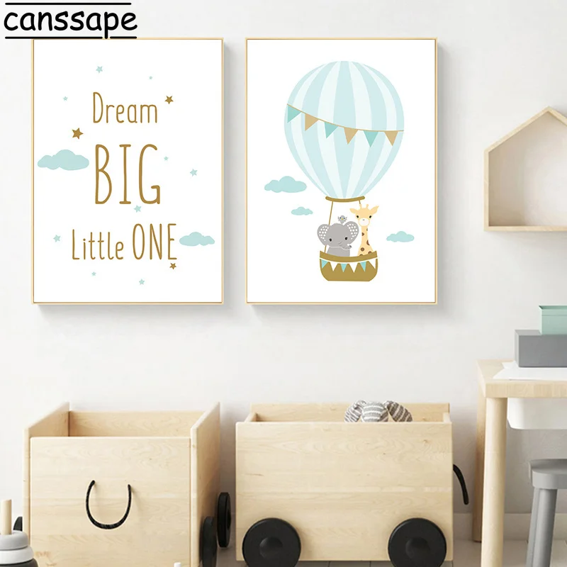 Скандинавские картины на холсте слон настенные плакаты Детские художественные принты синее облако плакат цитаты печать Настенная картина Декор детской комнаты