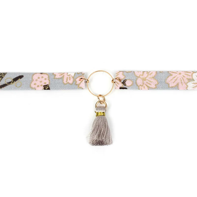 Ожерелье-чокер женское в стиле ретро, модное ожерелье из ткани лаванды, с кругами и кисточками, цепь до ключиц в японском стиле, 1 шт.