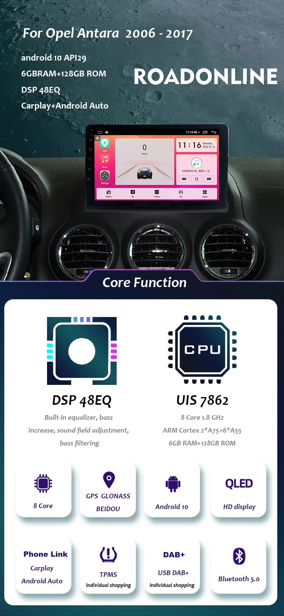 Roadonline Android 10 Автомобильный GPS-навигатор для Opel Antara мультимедийное радио видеоплеер навигация 9 дюймовый сенсорный экран стерео DSP