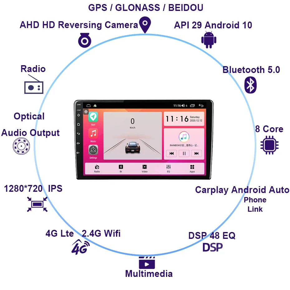 8 + 256 ГБ Android 10 Восьмиядерный процессор 4G WIFI Автомагнитола...
