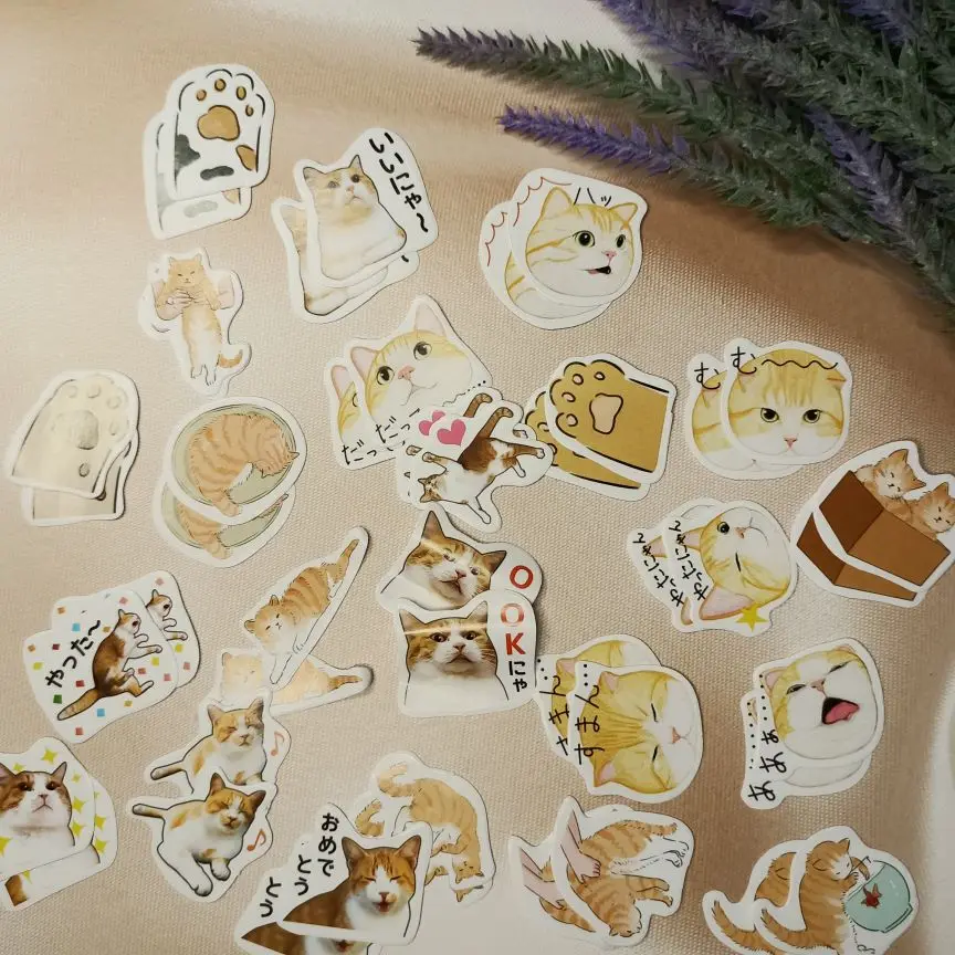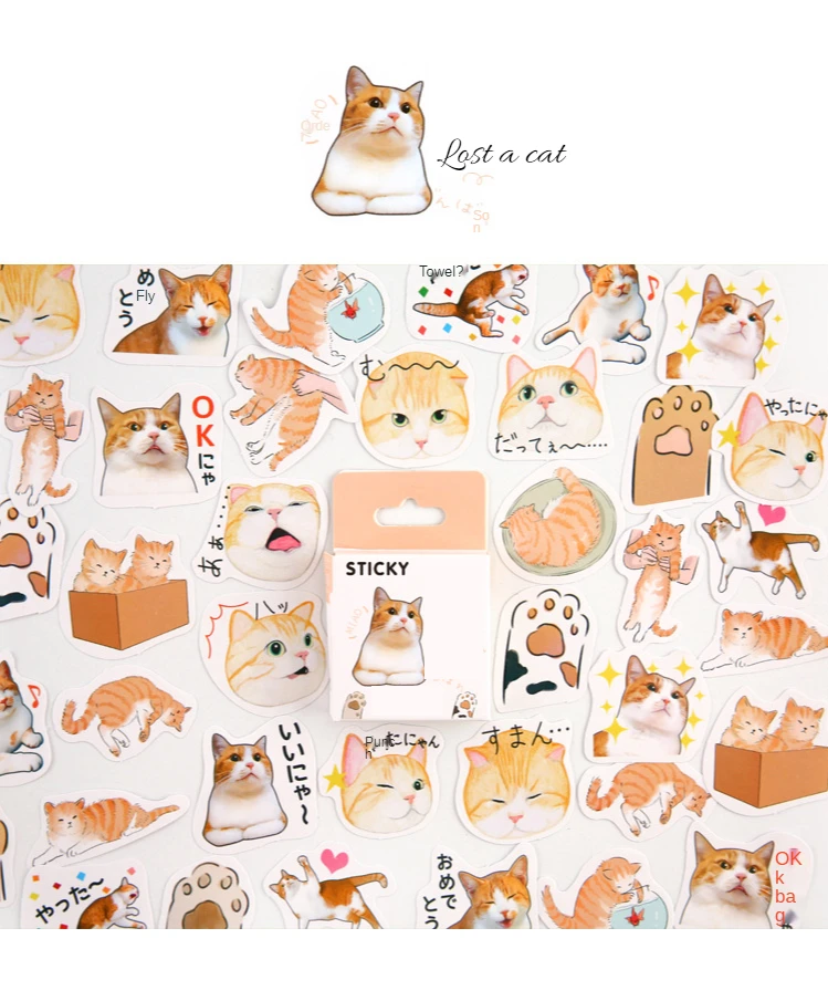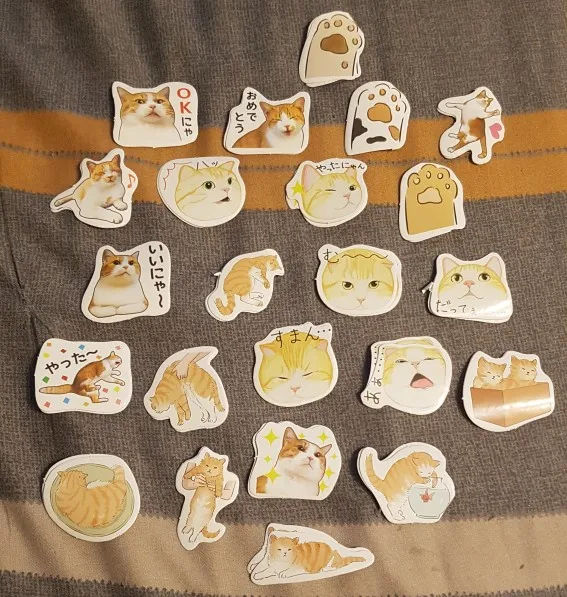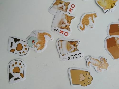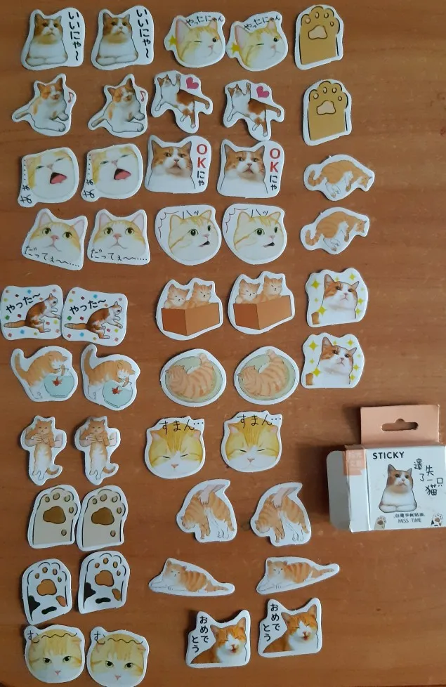 Классные стикеры с котиками, каждый стикер в двойном экземпляре)в упаковке 46 штук) очень милые котэ, все рыженькие)