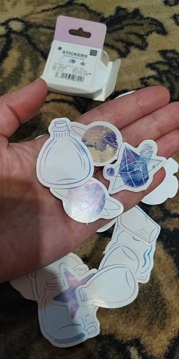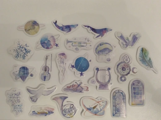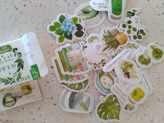 Стикеры просто Вау! Все наклейки выполнены в одной цветовой гамме и в одной тематике. Стикеры упакованы в компактную коробочку, все плотно туда помещаются, что очень удобно для из хранения - много наклеек и занимают мало места. Советую покупать в этом магазине - останетесь довольны!